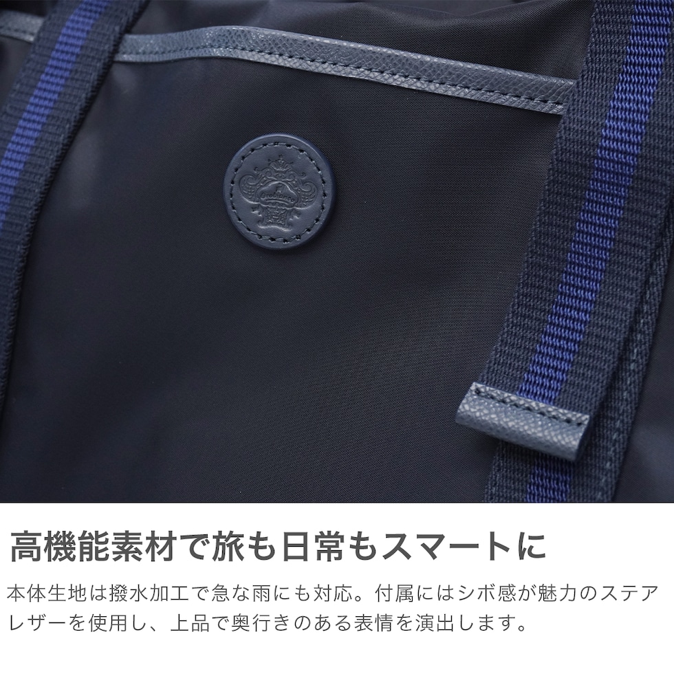 | 上質と実用性を両立 洗練ボストンバッグ 洗練されたデザインと高い機能性を備えた、トラベルシリーズ『VIAGGETTO』のボストンバッグです。環境に優しいリサイクルナイロンと上質な牛革を使用し、軽量かつ撥水性にも優れています。荷物がしっかり入る大容量ながら、持ち運びも軽やか。調整可能なハンドルで疲れにくく、旅行や出張はもちろん、日常使いにも最適な上品な一品です。 |