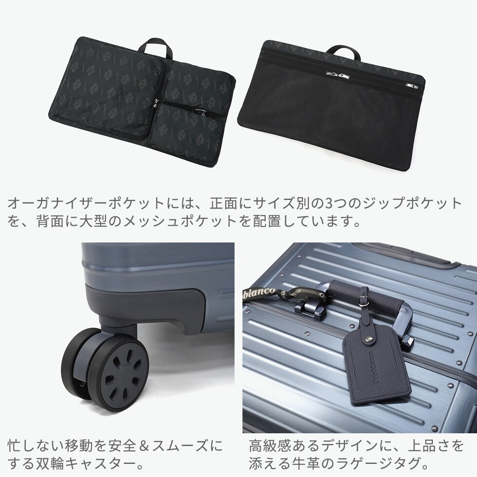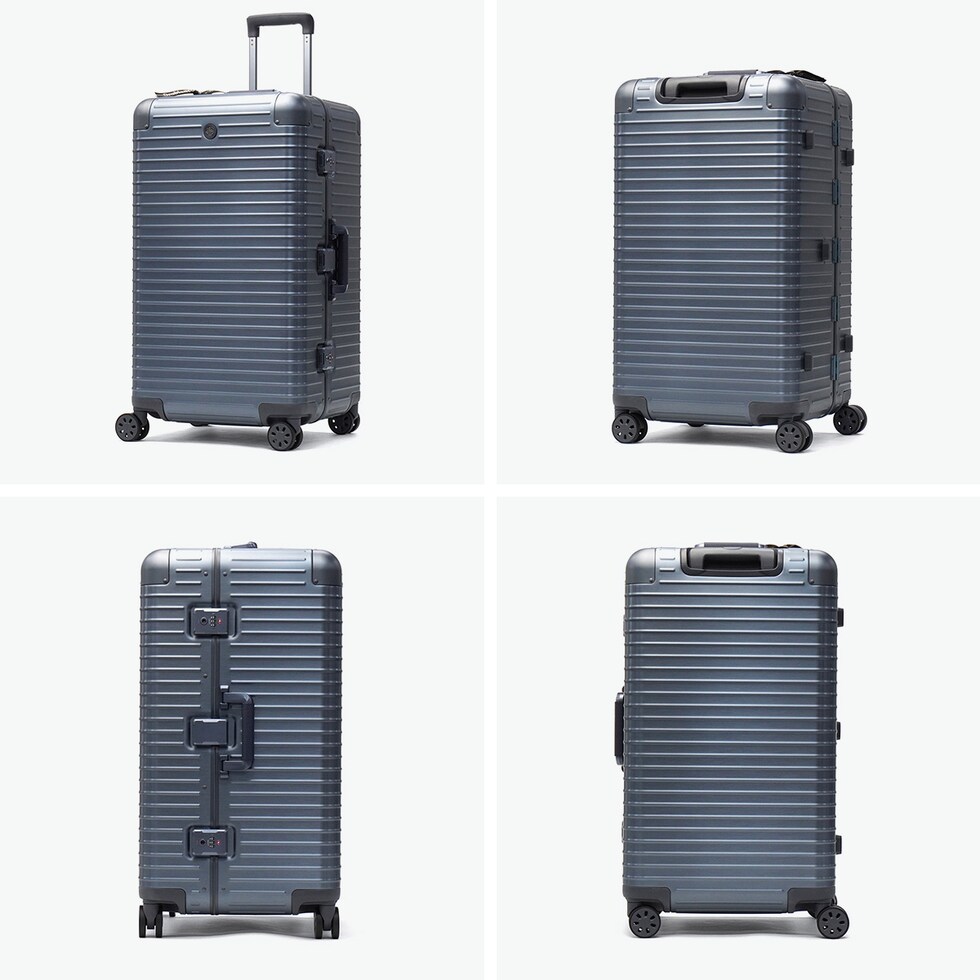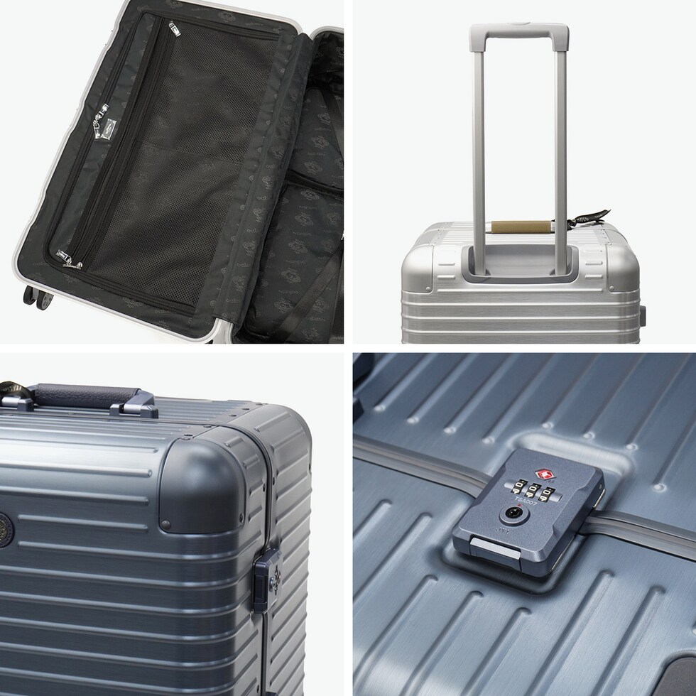 「Orobianco」初のアルミ合金製ラゲージ『MOVENZA/モヴェンツァ』。こちらは、長期滞在にも最適な98L容量のスーツケースです。ヘアライン加工された高級感のあるアルミボディに、手仕事が光るレザーハンドルが特徴。取り外し可能な仕切りを付属するなど機能的な設計。洗練されたラグジュアリー感と上質な存在感を放つ逸品に仕上がっています。
