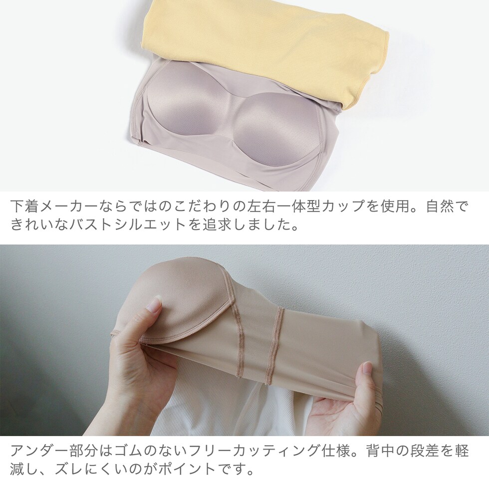 1枚できれいに着用可能 下着のワコールが手掛ける、機能性と高いデザイン性を両立したカップインTシャツ。ワコール独自のカップと服を一体化したデザインで、美しくボディラインを整え、一枚で、また組み合わせてもフレキシブルに自分らしい着こなしをお楽しみいただけます。 |