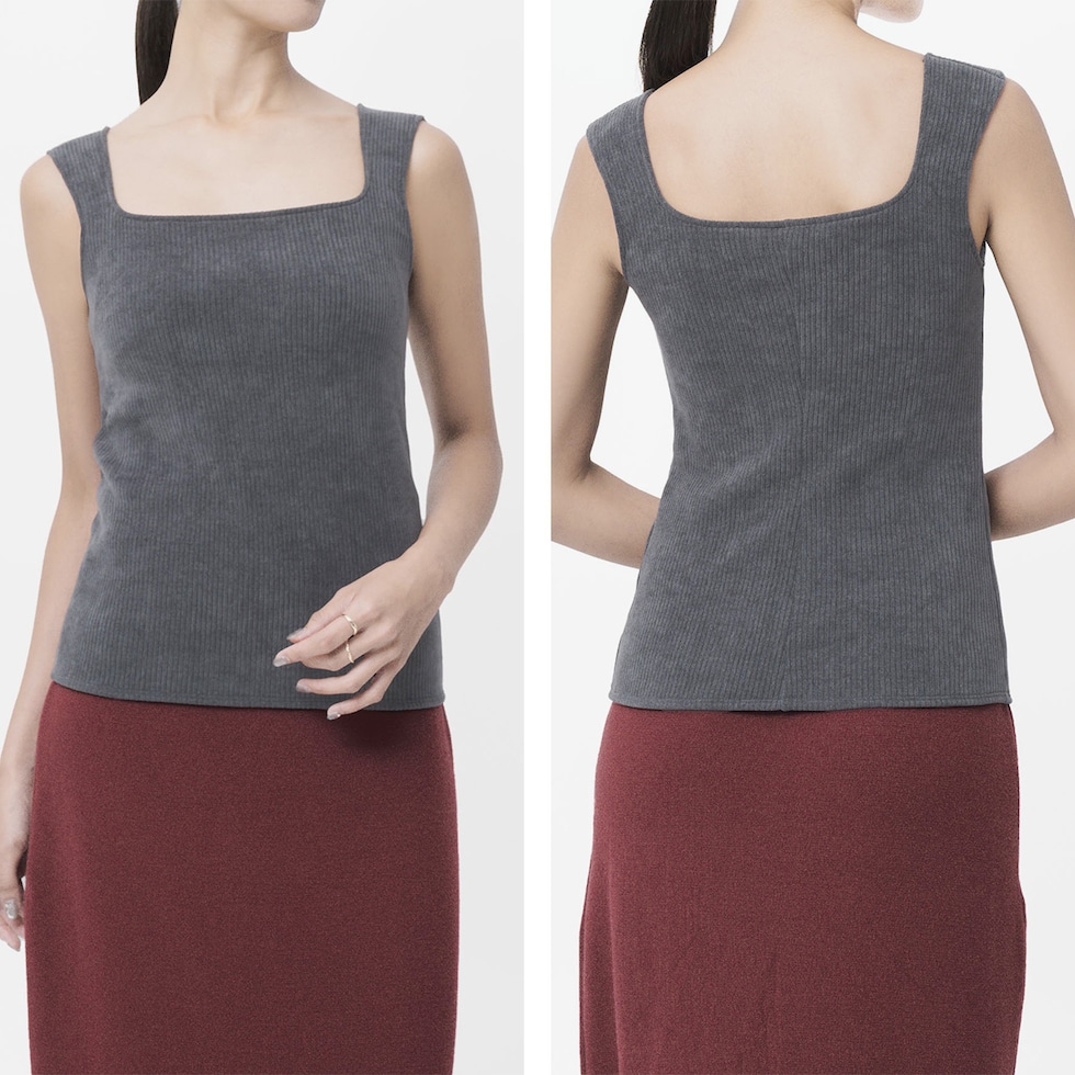 カップ付きタンクトップ シルエット感にこだわった、カップ付きのタンクトップです。コーデュロイ素材とニュアンスのあるカラーが、落ち着きのある雰囲気を演出。1枚でも上にジャケットを羽織っても、コーデの雰囲気を秋冬っぽく仕上げてくれます。下着メーカーならではのこだわりが詰まったカップは、自然で綺麗なバストシルエットを追求しました。 |