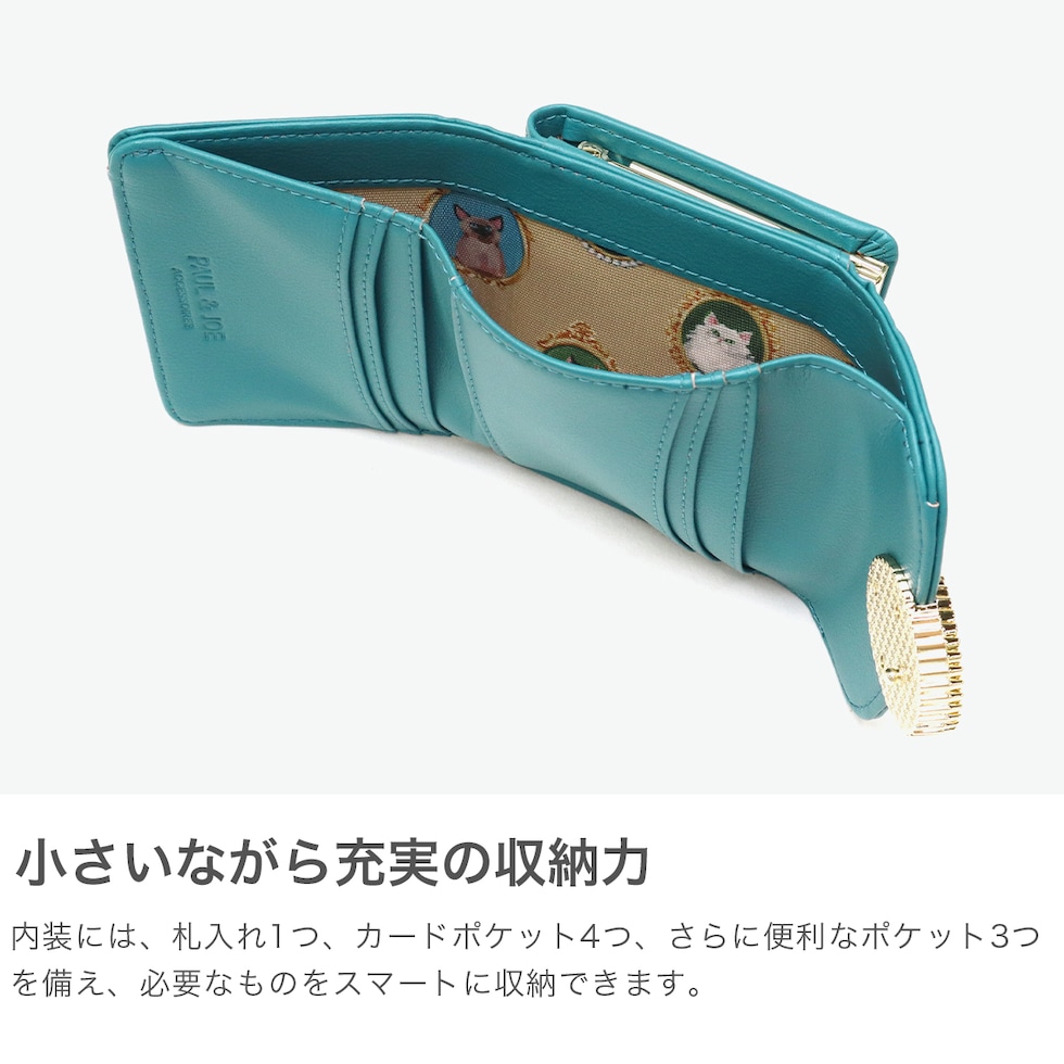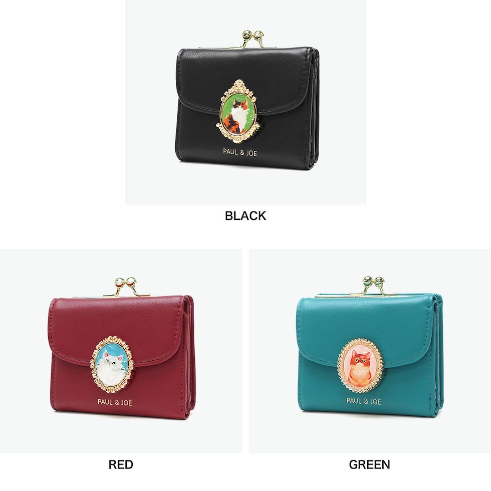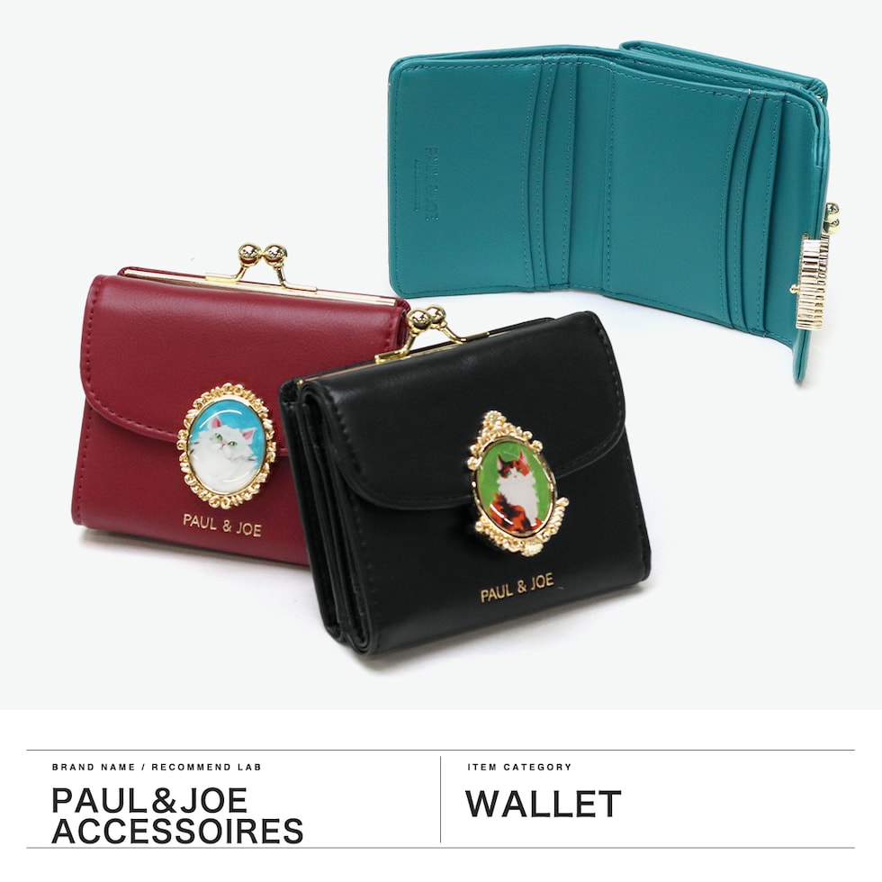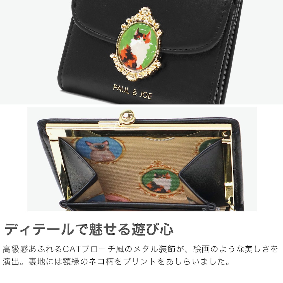 PAUL&JOE ACCESSOIRES 三つ折り財布 レディース コンパクト 財布 ポールアンドジョー 合皮 がま口 小銭入れ ミニ財布 かわいい おしゃれ 上品 猫 ネコ ねこ ブローチ CAT BROOCH 口金ミニ財布 PJA-W1172