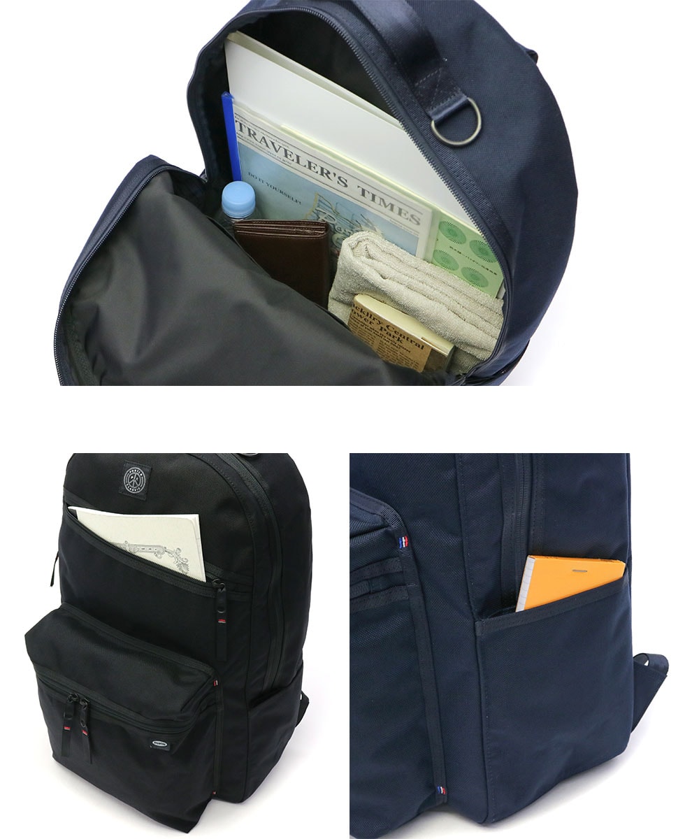 収納スペースはB4サイズに対応した容量23Lで、普段持ち歩く荷物がしっかり収納可能。ノートPCやペットボトルなどの重さのある荷物を入れても負担にならずに持ち運べます。※電子機器などを収納する際は、専用の衝撃吸収インナーケースに入れてからバッグに入れてご使用下さい。