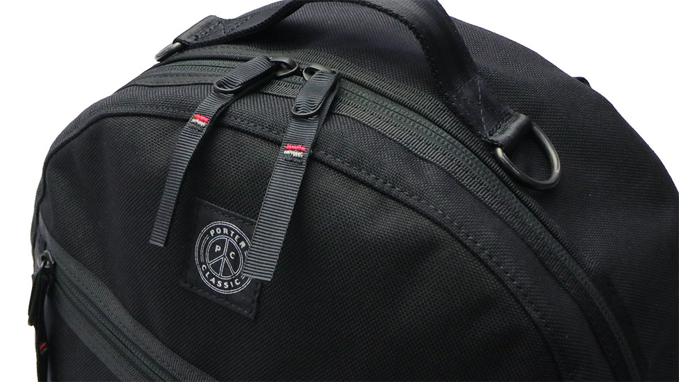 本体には、通常ナイロンの7倍の強度を持つ丈夫なコーデュラナイロンを使用しています。ファスナー引き手のテープには刺繍を施しており、シンプルなデザインの中のワンポイントになっています。