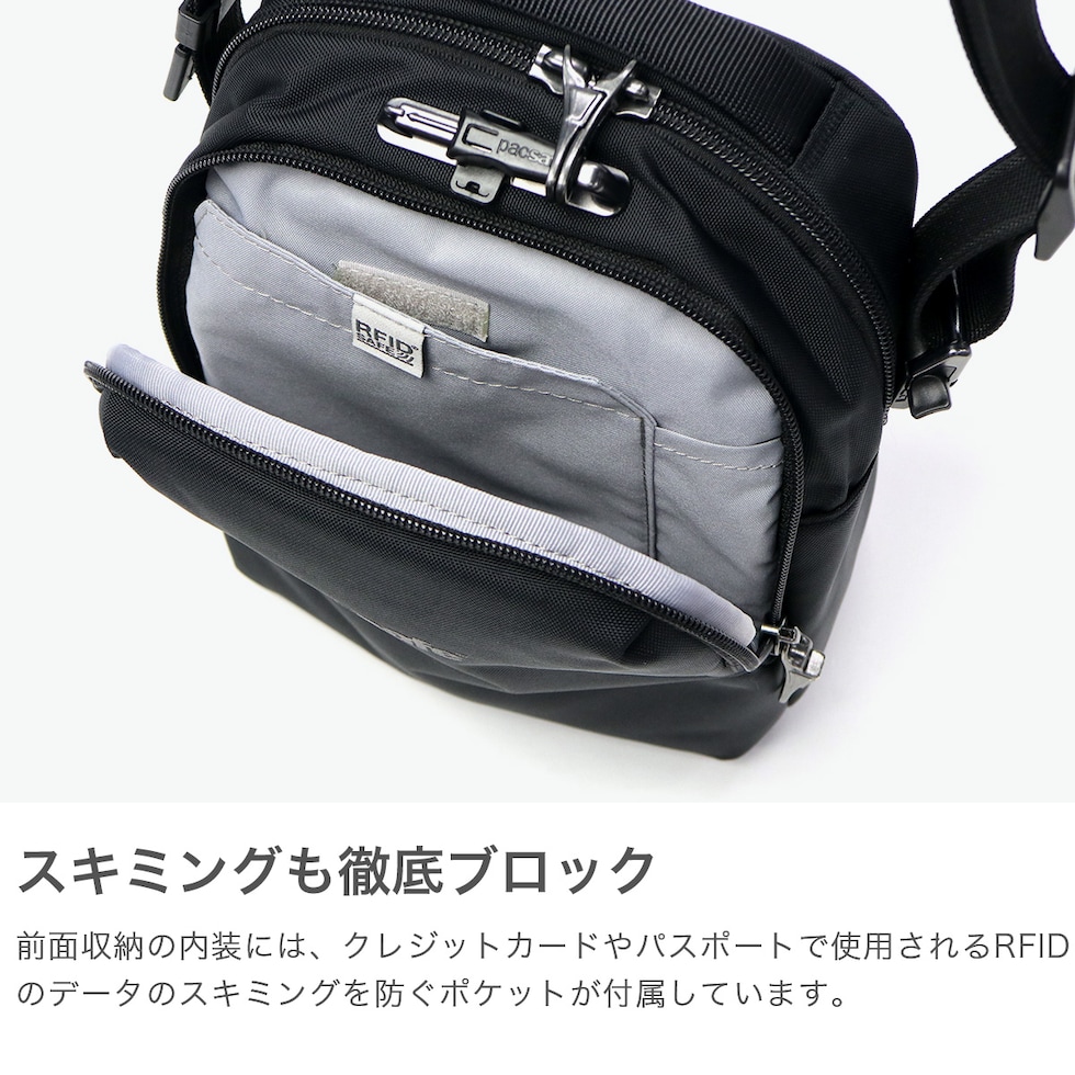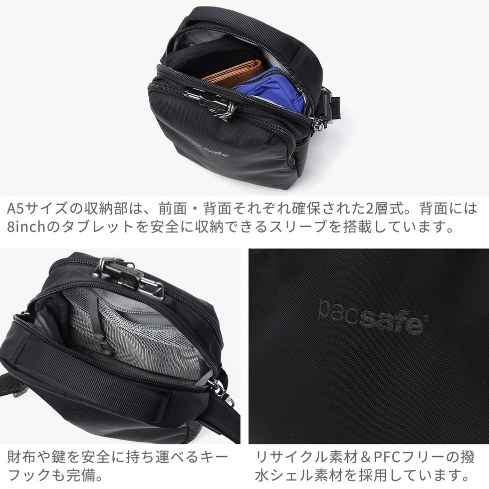 パックセーフ ショルダーバッグ メンズ レディース 斜めがけバッグ pacsafe RFIDセーフ 斜めがけ 小さめ ブランド スキミング防止 防犯 旅行 アウトドア 撥水 5L A5 タブレット収納 Vコンパニオン クロスボディ
