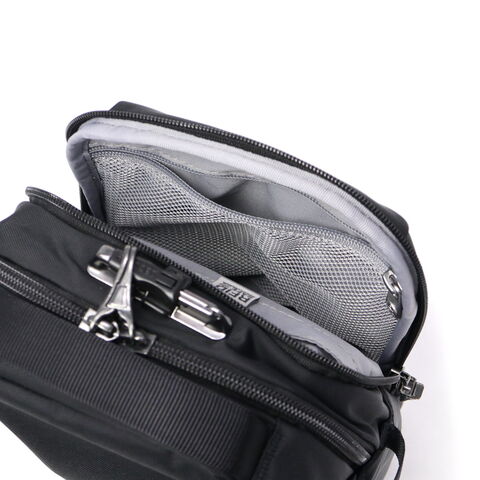| セキュリティ機能満載で 安心をアップデート 「Vコンパニオン クロスボディ」は、必需品を安全に持ち運べるように設計されたショルダーバッグです。いくら気の長い窃盗犯でも諦める3段階のロッキングシステムや、スキミング防止のポケットなど、独自の盗難防止機能を多数搭載。加えて、ツールを綺麗に収納できる実用的なデザインで、タウンユースから旅行時のサブバッグまで幅広く活躍します。 |