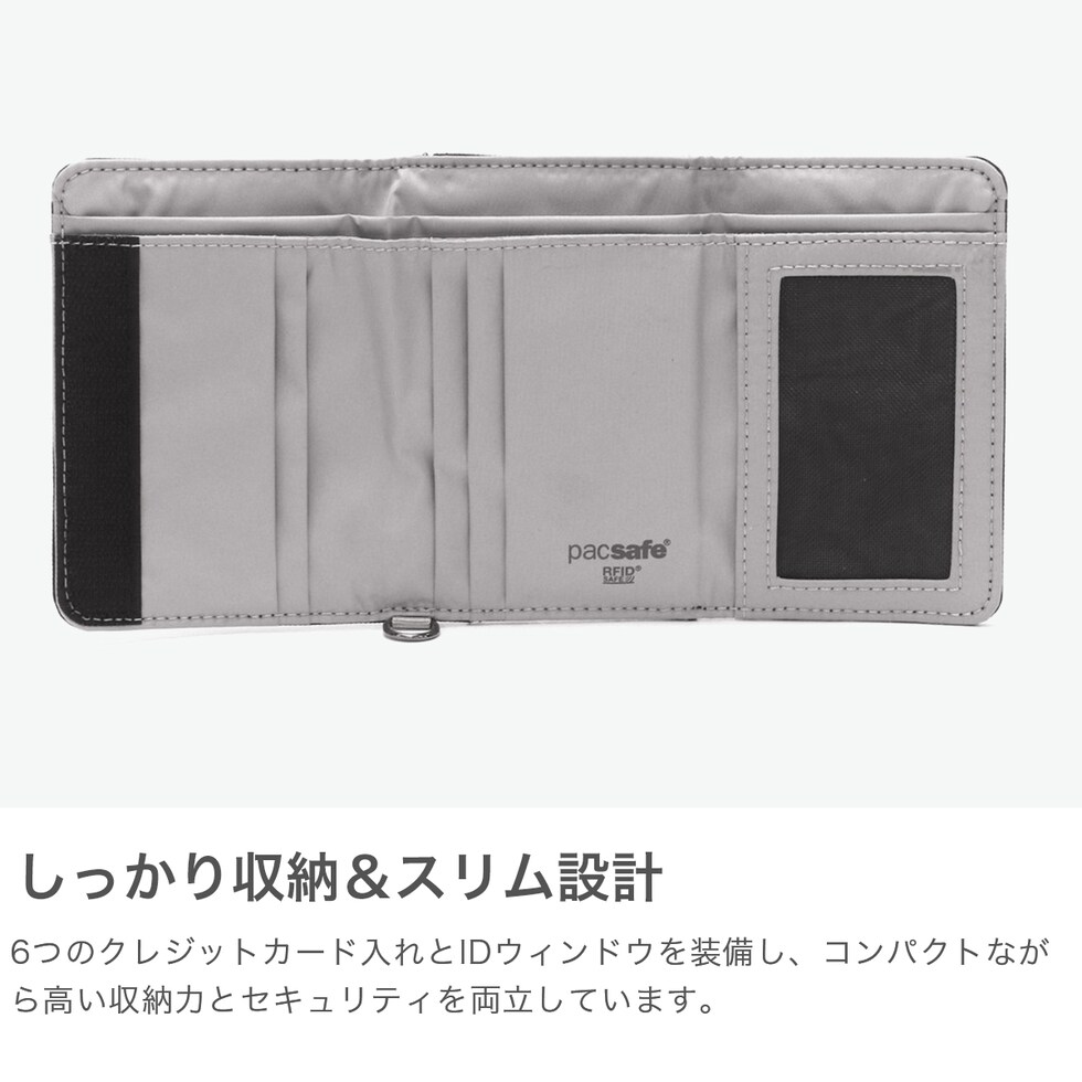 パックセーフ 三つ折り財布 メンズ レディース 財布 ブランド pacsafe コンパクト 黒 小銭入れ カード スリム おしゃれ カジュアル かっこいい 撥水 RFIDセーフ機能 RFIDトライフォールドウォレット