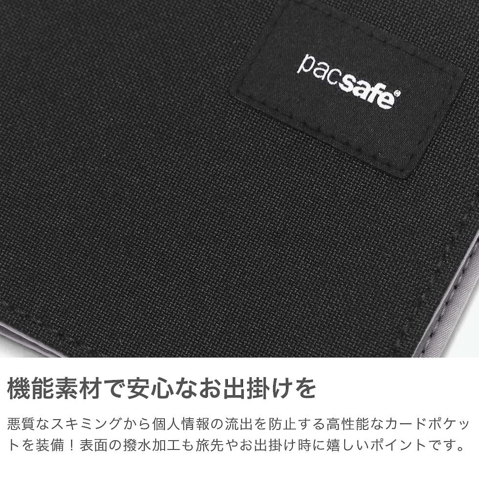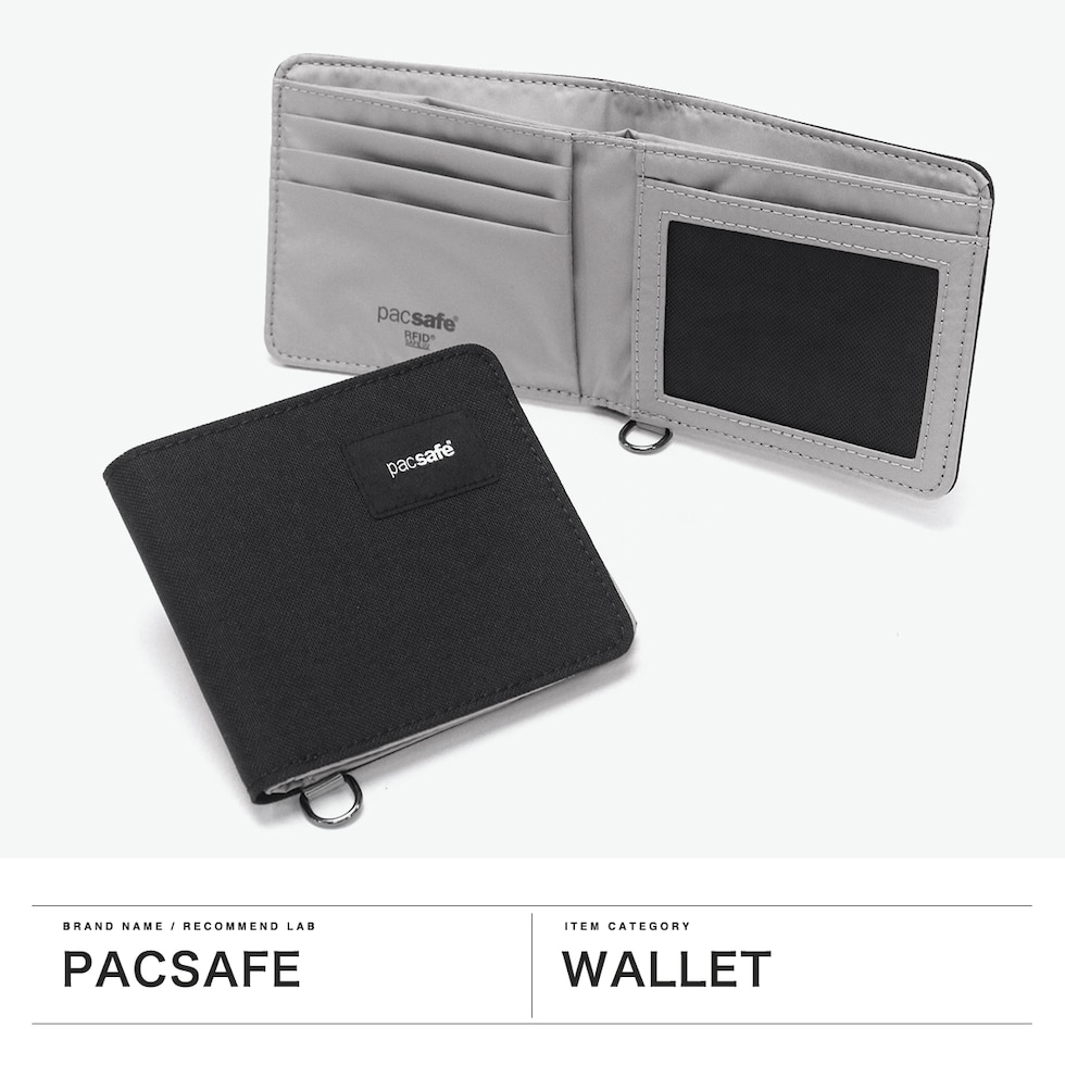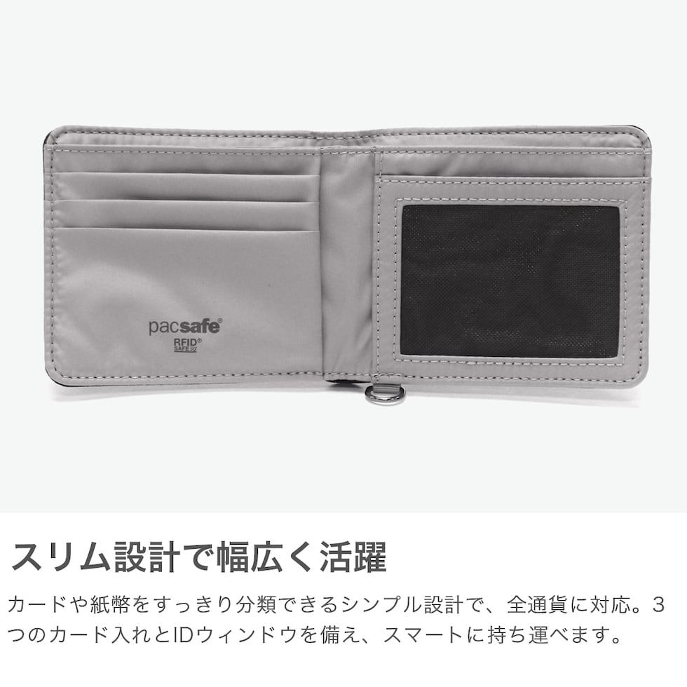 パックセーフ 二つ折り財布 メンズ レディース ブランド pacsafe 財布 小さい 小銭入れなし 薄い コンパクト 黒 カード おしゃれ カジュアル かっこいい 撥水 RFIDセーフ機能 RFIDバイフォールドウォレット