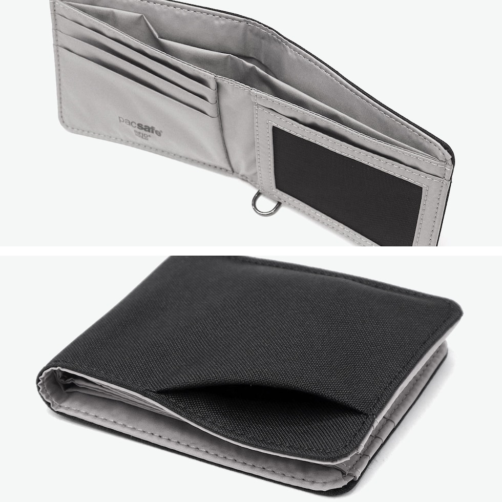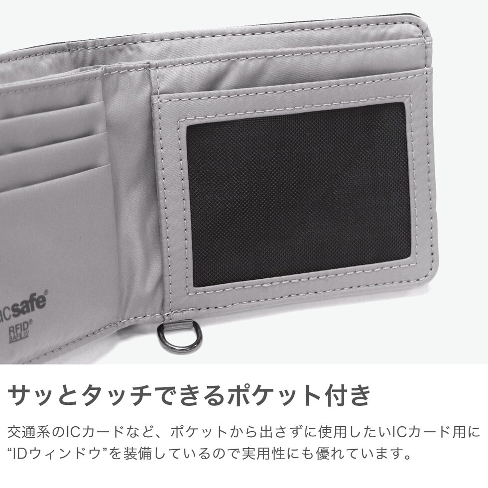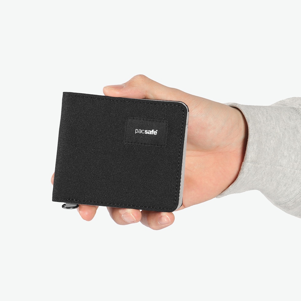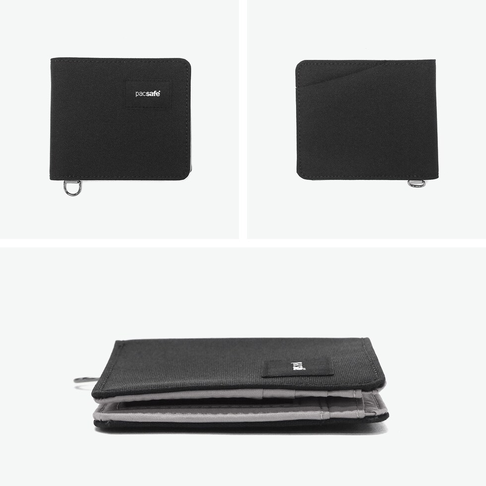 パックセーフ 二つ折り財布 メンズ レディース ブランド pacsafe 財布 小さい 小銭入れなし 薄い コンパクト 黒 カード おしゃれ カジュアル かっこいい 撥水 RFIDセーフ機能 RFIDバイフォールドウォレット