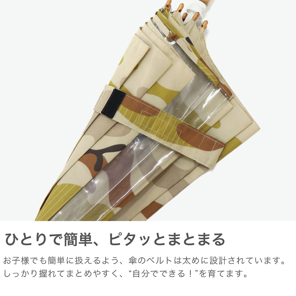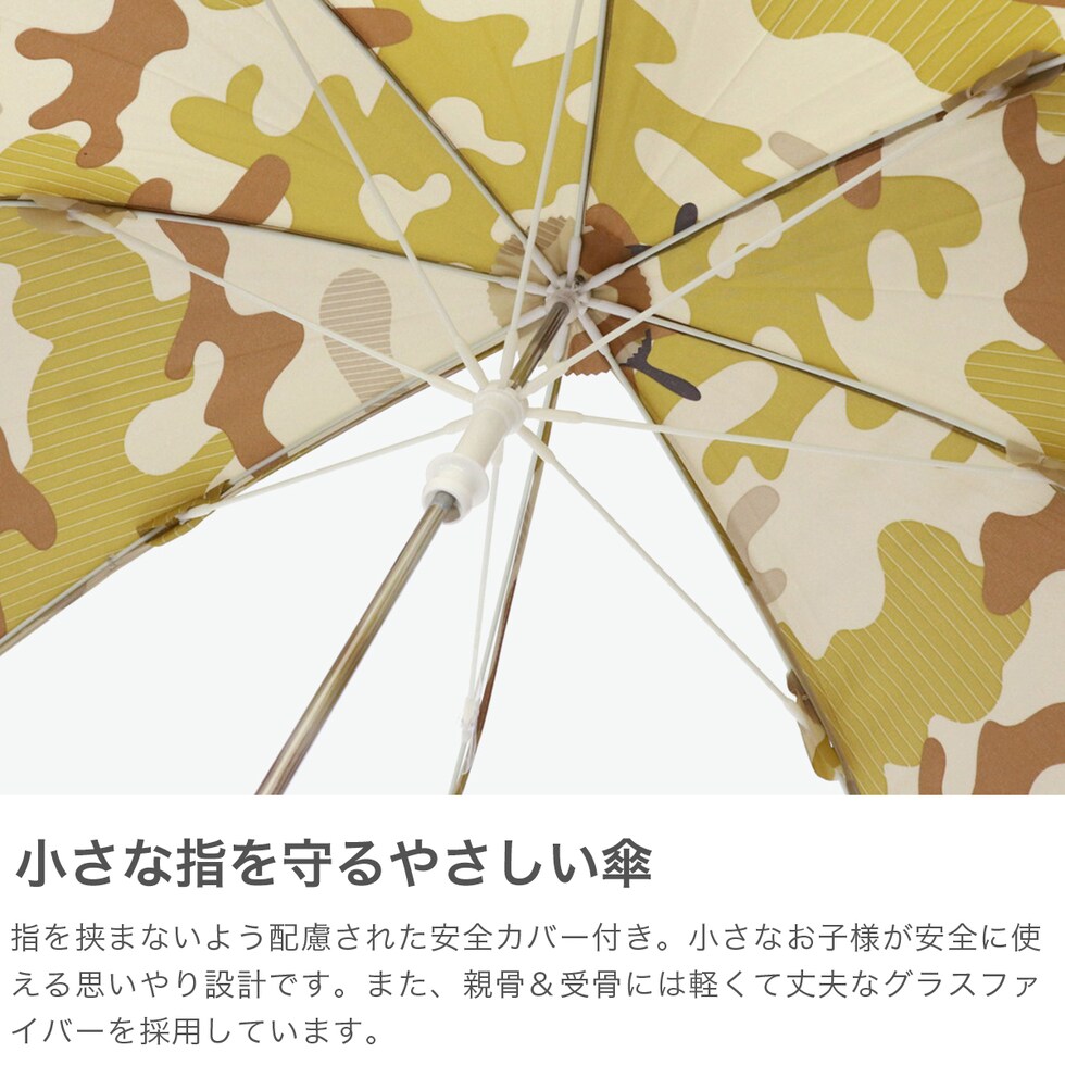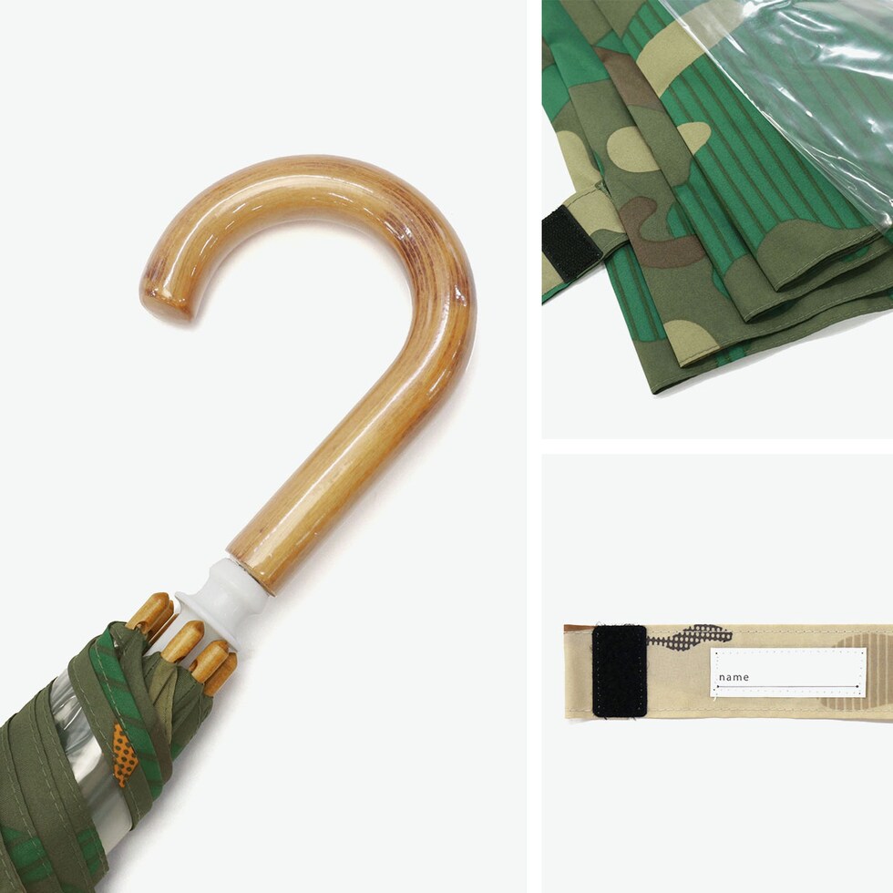 子供らしく仕上げた迷彩 ナチュラルさも感じる品のある迷彩柄がポイント!392plusmのキッズ用長傘は、子どもの使いやすさを追求した安心安全設計。軽くて丈夫なグラスファイバー製&指挟み防止付きで安心。視界確保のクリア窓やネームタグ付きで通学にも最適な1本となっています。 |