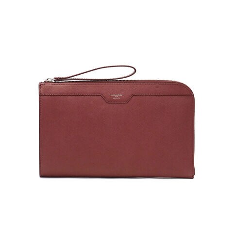 ファスナー引手にはストラップが装備され、手を掛けながら持ち歩きやすい作りになっています。また、バッグインバッグとしても使いやすい大きさで実用性の高いクラッチに仕上がっています。