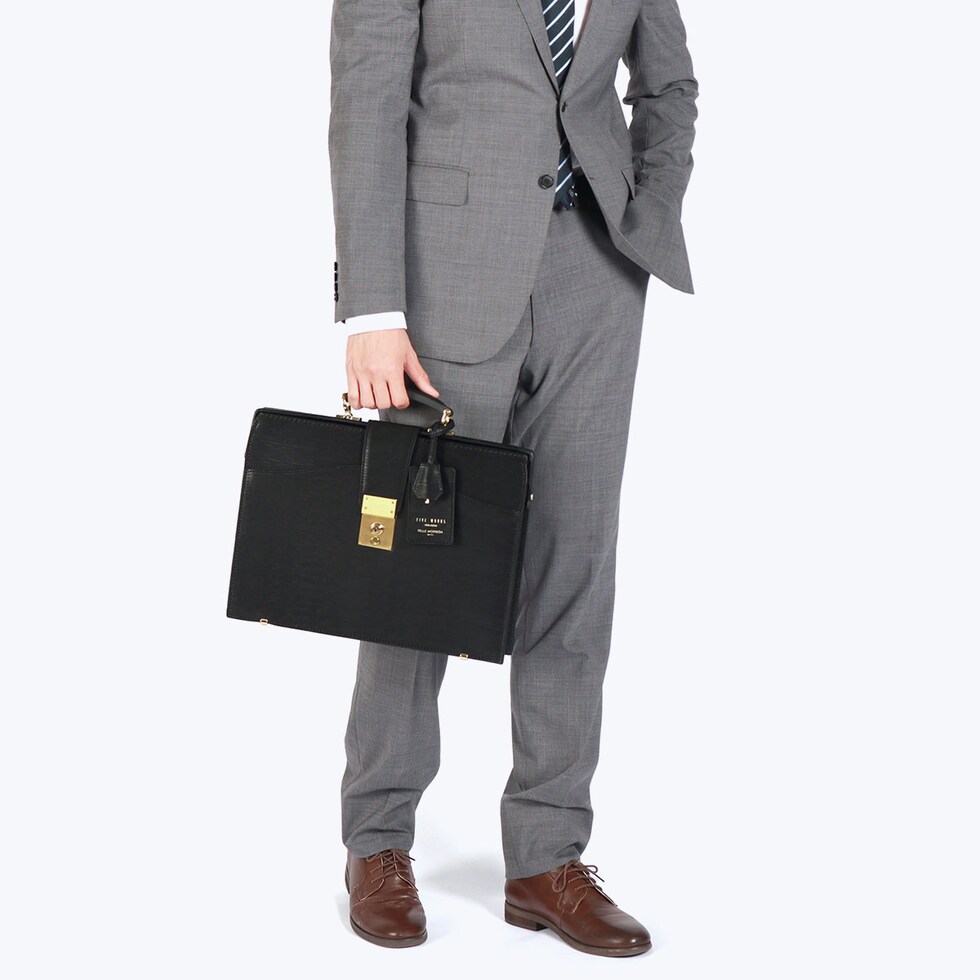 二つのブランドが魅せる 男気溢れるダレスバッグ 1890 年創業「林五」のバッグブランド「FIVE WOODS」と「PELLE MORBIDA」がコラボレーションしたトラディショナル雰囲気漂うダレスバッグ。デザインはベーシックなタイプでありながら、マチ幅は抑え普段のビジネス使いがしやすいスマートな逸品に仕上がっています。 |