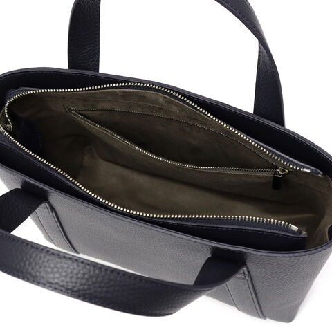 | 上品に仕上がった 本革ミニトートバッグ 軽快さとトラディショナルな上品さを表現したシリーズ『Tela Marina/テーラ マリーナ』。男女問わず、カジュアルバッグの定番となった人気ミニトートバッグにファスナー付きモデルが登場。ファスナーを付けることでカジュアルさを抑え、さらにシュリンク風型押しの本革が上品な仕上がりを演出してくれます。 |