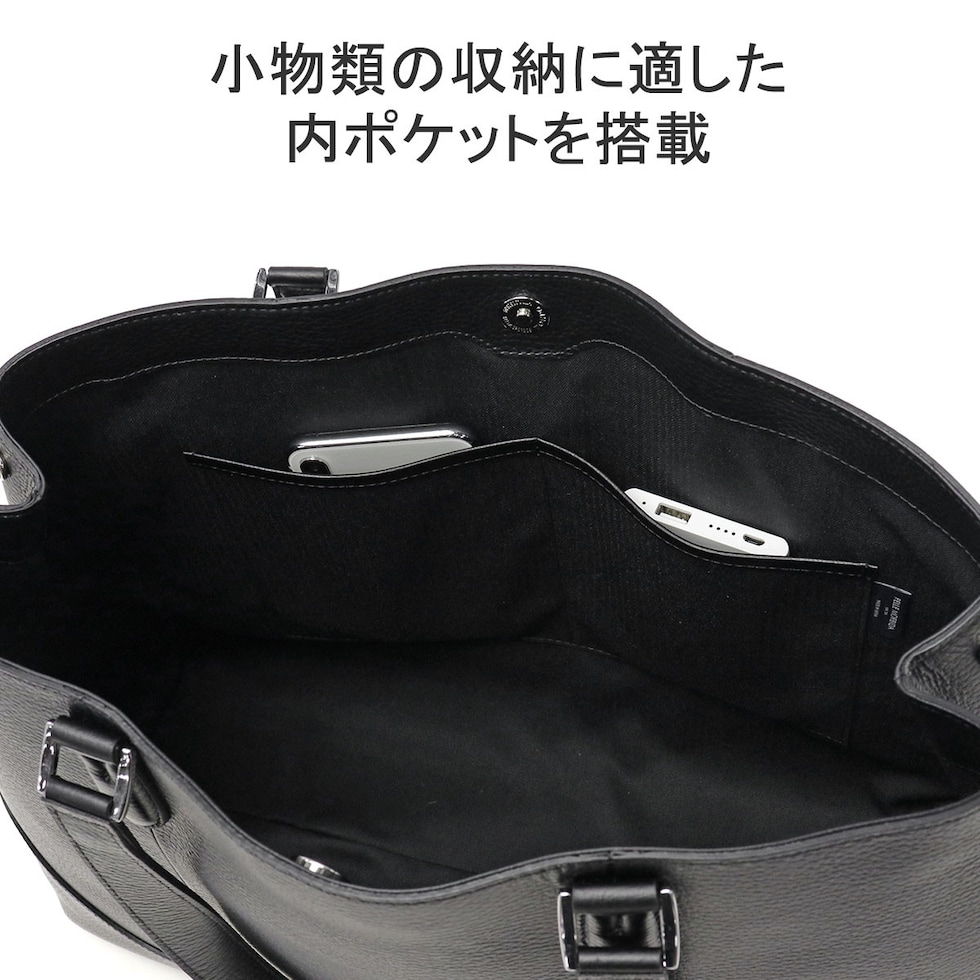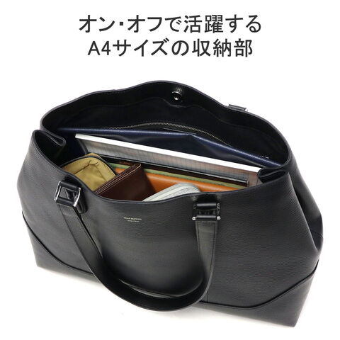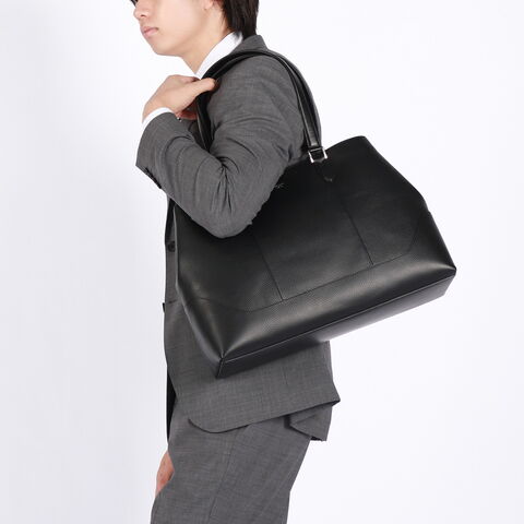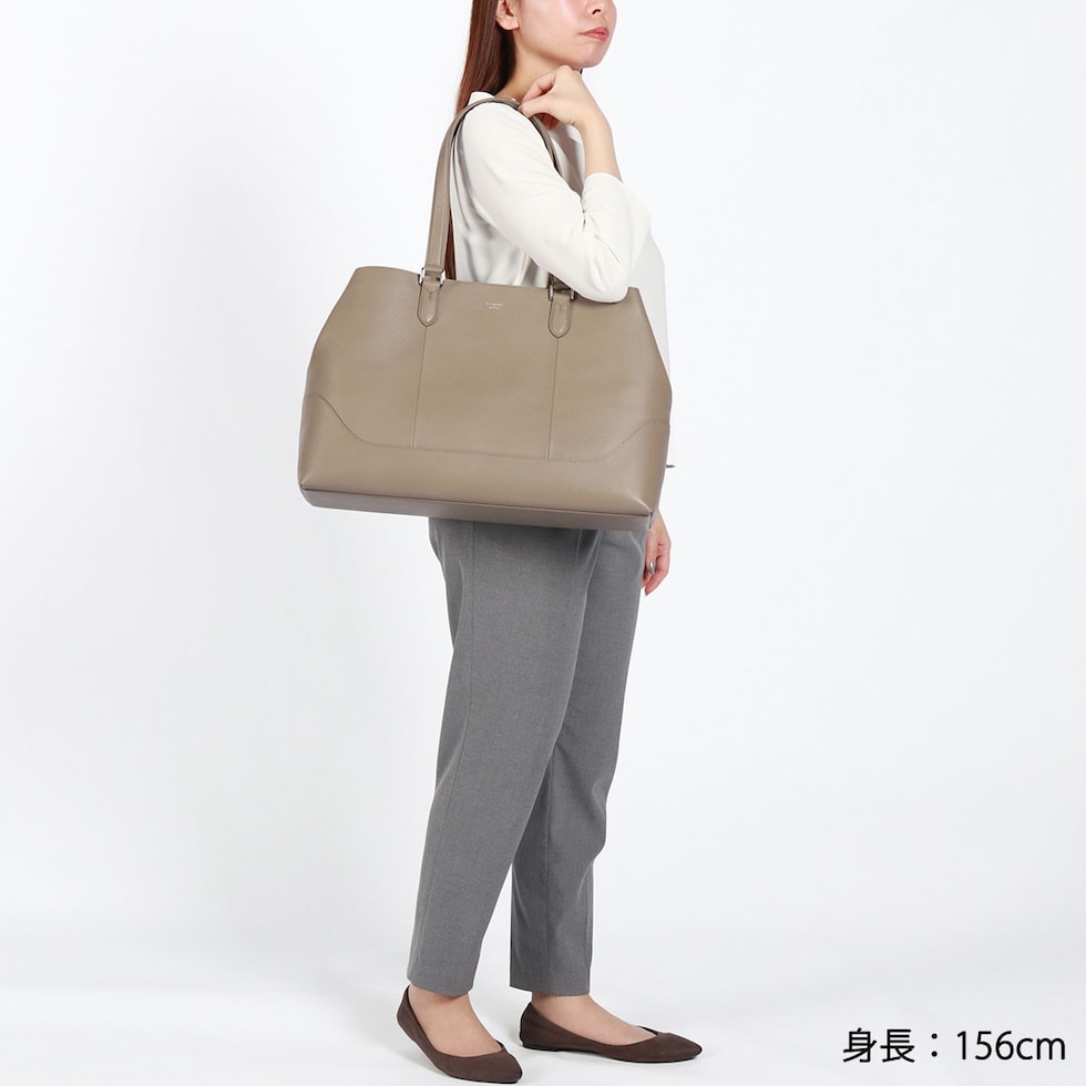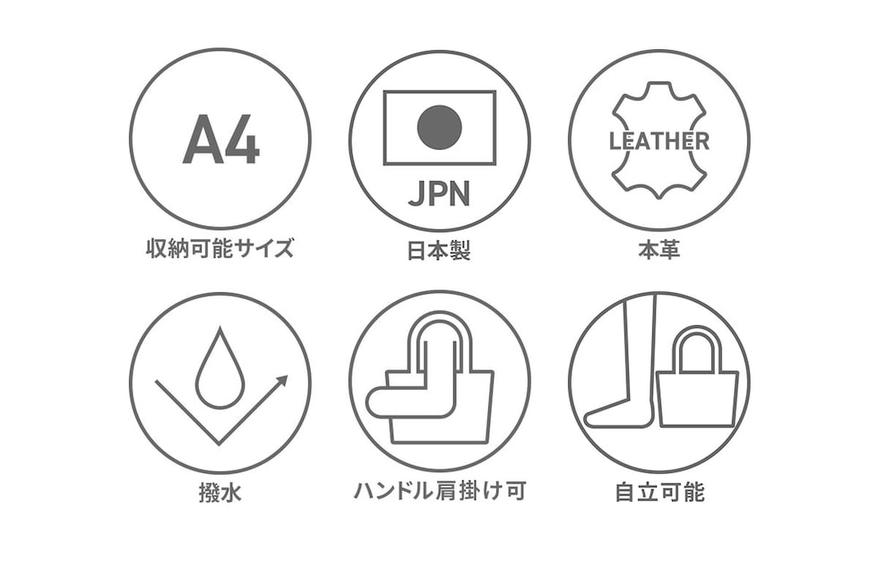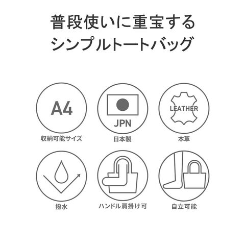 “色”を選ぶ楽しさを味わえるよう、シンプルなデザインで仕上げられたトートバッグ。A4サイズのメインルームには、複数のポケット付いており収納力を備えた仕上がりです。ゆったりとしたシルエットながらも、自立してくれる安定感のある形に造られています。また全面に撥水加工が備わったレザーを採用しており、汚れや雨、雪を弾いてくれる仕様が魅力です。
