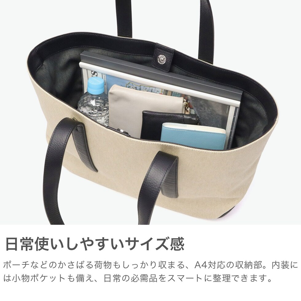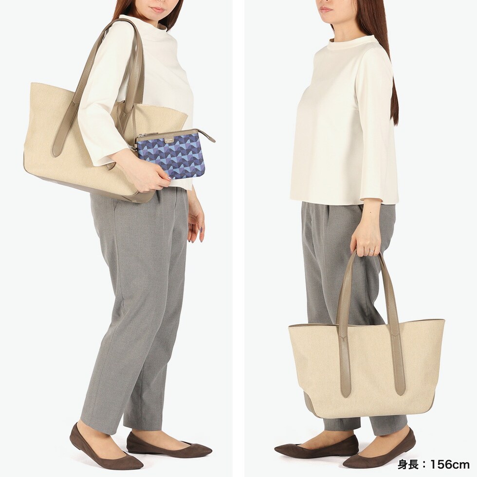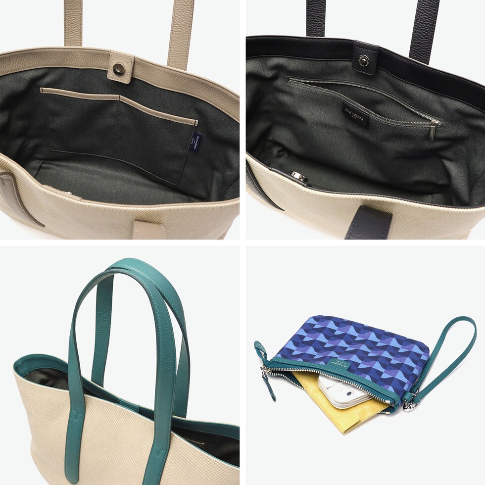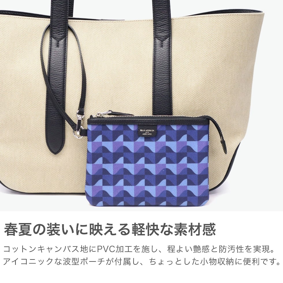 大人カジュアル イタリアのチンクエテッレの色鮮やかな街並みをテーマにした『Cinque Terre/チンクエ テッレ』シリーズのキャンバスコットントート。程よい艶を放つ生地が、春夏の装いに軽やかな上品さをプラスしてくれます。防汚性にも優れ、デイリーに使えるところもポイント。ブランドアイコンらしい波型ポーチも付属し、洗練されたデザインと実用性を兼ね備えた仕上がりが魅力です。 |