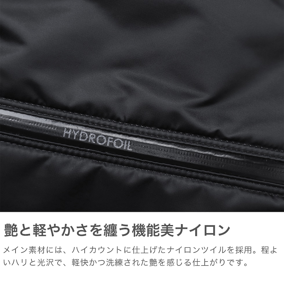 | スマートに背負う 機能美リュック 効率的な機能性や利便性を追求したシリーズ『HYDROFOIL/ハイドロフォイル』のバックパックです。15インチPCや、書類がすっきり入るスクエア型で使いやすさも抜群で、デイリーから通勤・通学までマルチに活躍します。光沢感のあるナイロン素材は手触りもなめらか。すっきり持てる大人のリュックです。 |
