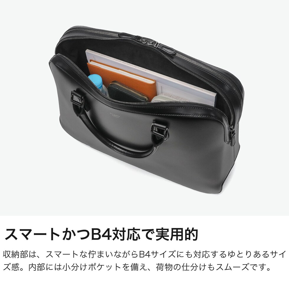 スマートな素材感と曲線的なフォルムが人気の『Capitano/キャピターノ』シリーズのビジネスバッグ。無駄を削ぎ落とした洗練されたデザインに、ほどよい艶感が上質さと高級感を演出します。スマートな佇まいながらB4サイズにも対応するゆとりあるサイズ感で、荷物が多い日でも安心して使える設計。毎日の通勤はもちろん、スーツケースへのセットアップ機能も備え、出張など移動の多いシーンでも活躍するアイテムです。