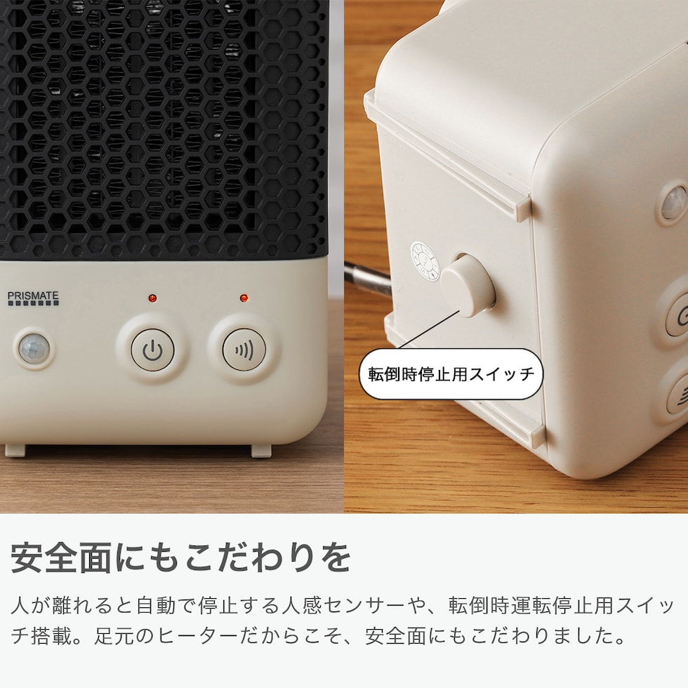 【正規品1年保証】 プリズメイト ヒーター 足元 おしゃれ PRISMATE オフィス 省エネ 小型 小さめ 小さい コンパクト ミニ ファンヒーター 電気 600W PR-WA023 人感センサー付セラミックファンヒーター