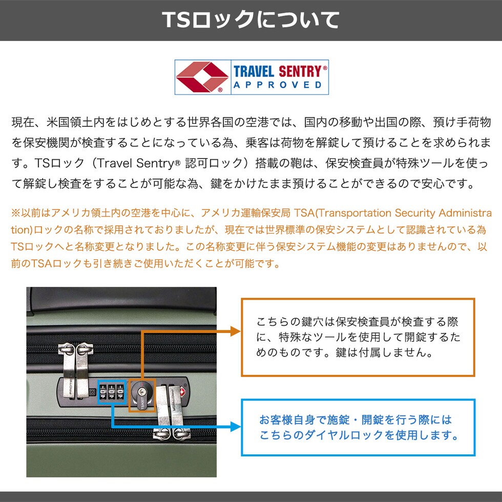 | TSAロック | あり ※TSAロックについて |