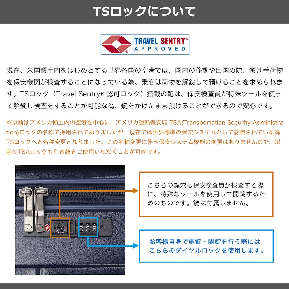 ・エキスパンダブル機能付きの製品は、マチ拡張時の3辺の和が機内持ち込みサイズ、預け入れ無料サイズを超える場合がございます。また、航空会社や飛行機の機種などによって規定が異なりますので、予めご確認の上お求めください。