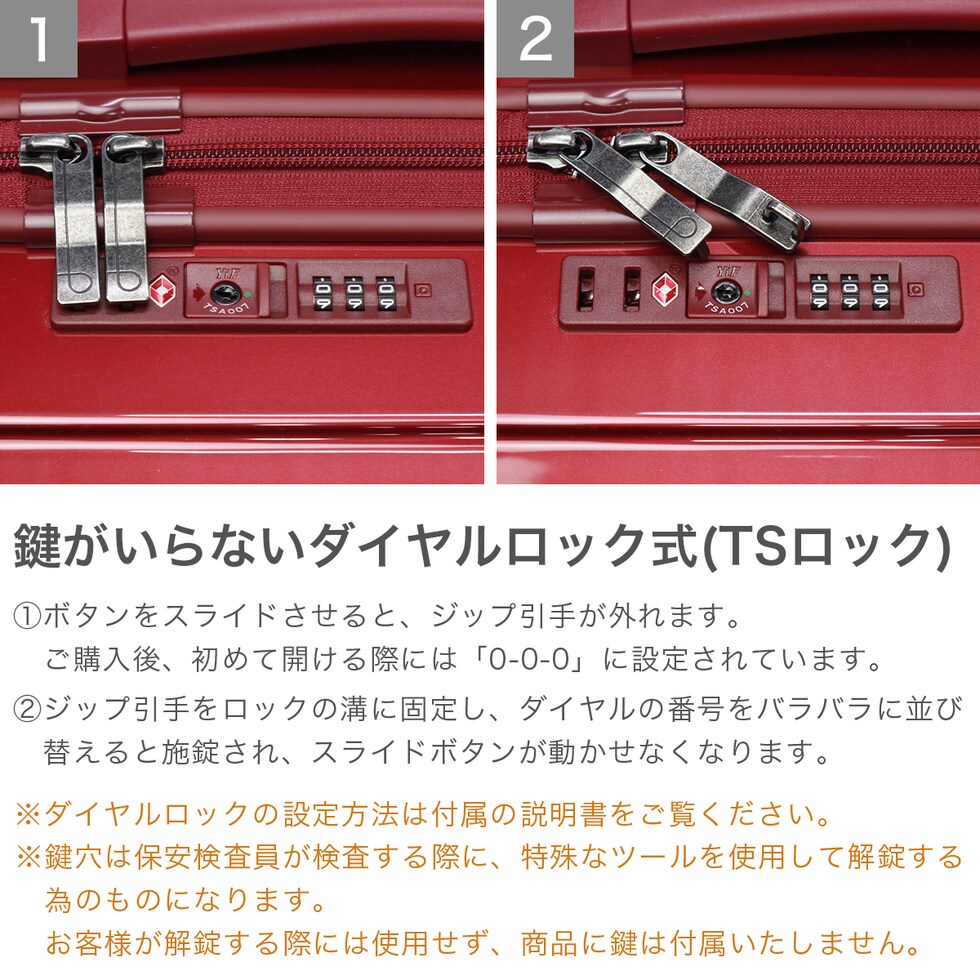 | TSAロック | あり ※TSAロックについて |