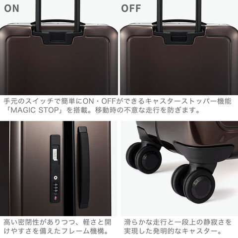 | <購入前にご確認ください> ・メーカーの意向により、付属品の収納袋・箱、製品の仕様・デザインは予告なく変更となる場合がございます。 ・下記による返品・交換はお受けすることができませんので、予めご了承ください。 └ 製品の性質上による細かいキズや塗装ムラ、気泡などがある場合。 └ 配送用の段ボールにキズ、汚れ、破損がある場合。 ・エキスパンダブル機能付きの製品は、マチ拡張時の3辺の和が機内持ち込みサイズ、預け入れ無料サイズを超える場合がございます。また、航空会社や飛行機の機種などによって規定が異なりますので、予めご確認の上お求めください。 ※機内持ち込みサイズ目安表はこちら ・荷物をお預けの際は、キャスターストッパーをOFFにしてください。 ・水濡れ(雨・汗など)や日焼けにより、色落ち、退色する恐れがございます。商品のお取り扱いには十分にご注意ください。 ・柄の位置やカラーバランスなどは、生地の裁断や製造過程、素材の特性により画像とは異なる場合がございます。商品をお選びすることはできませんので、予めご了承ください。 ・極力実物に近い色味を再現しておりますが、モニター等の条件により画面上と実物では色味が異なって見える場合がございます。 |