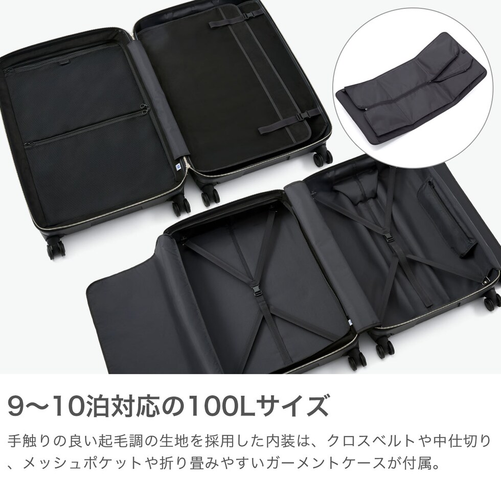 | 仕様 | <内側> ポケット×3 <付属品> ガーメントケース×1 ラゲージカバー×1 |