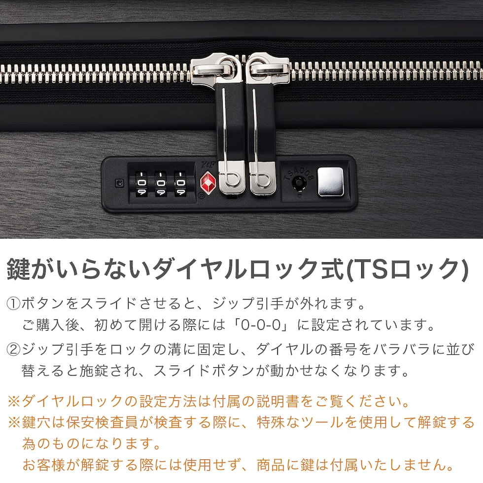 | TSAロック | あり ※TSAロックについて |