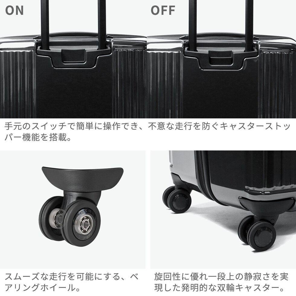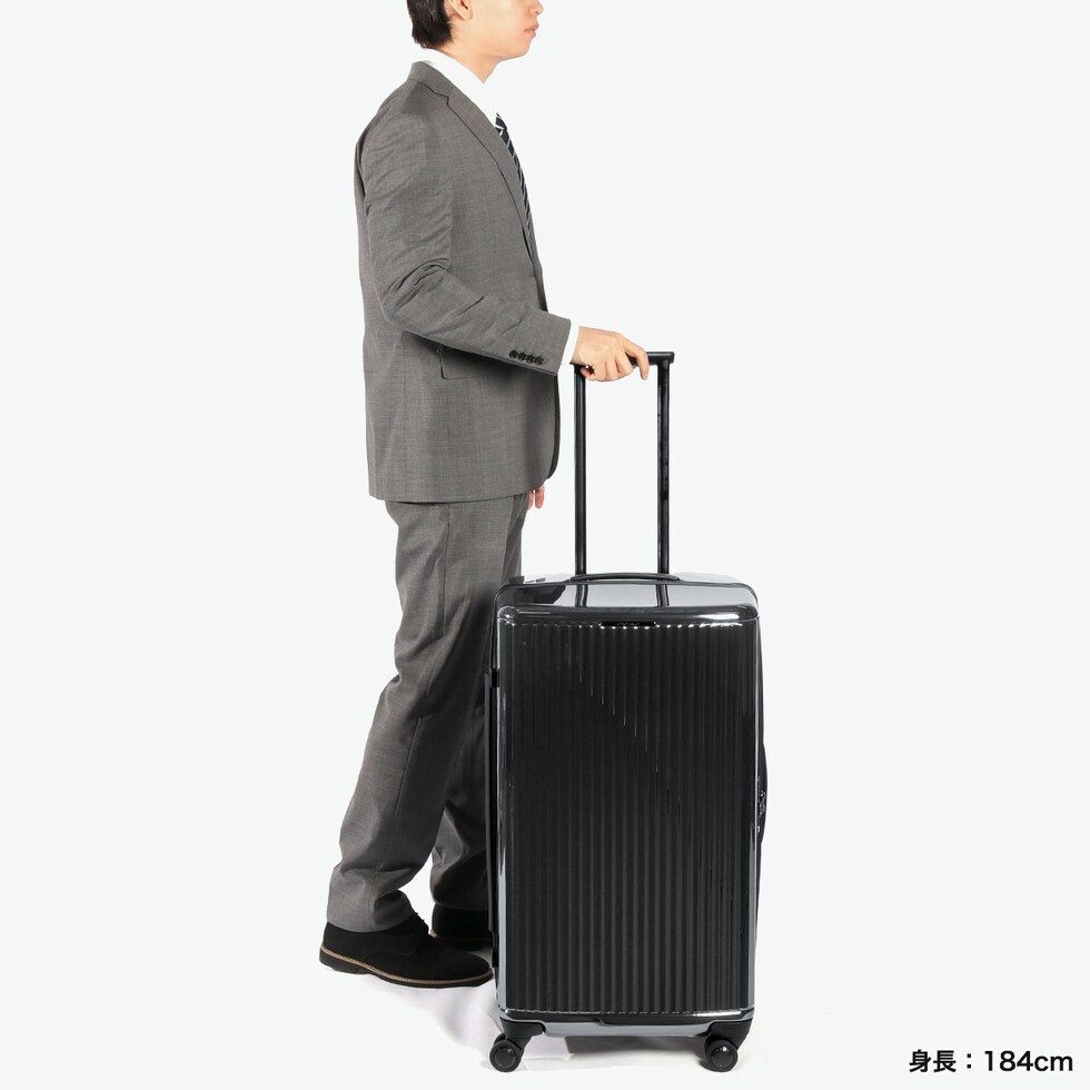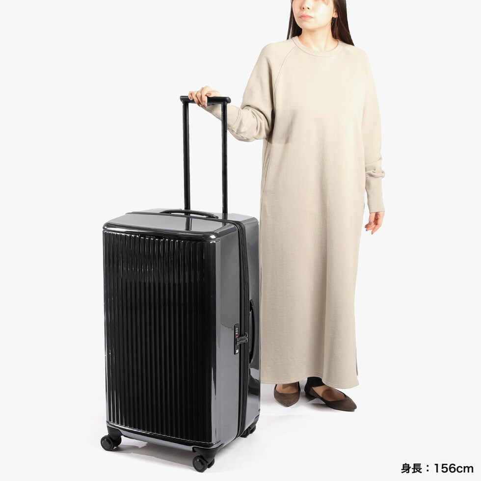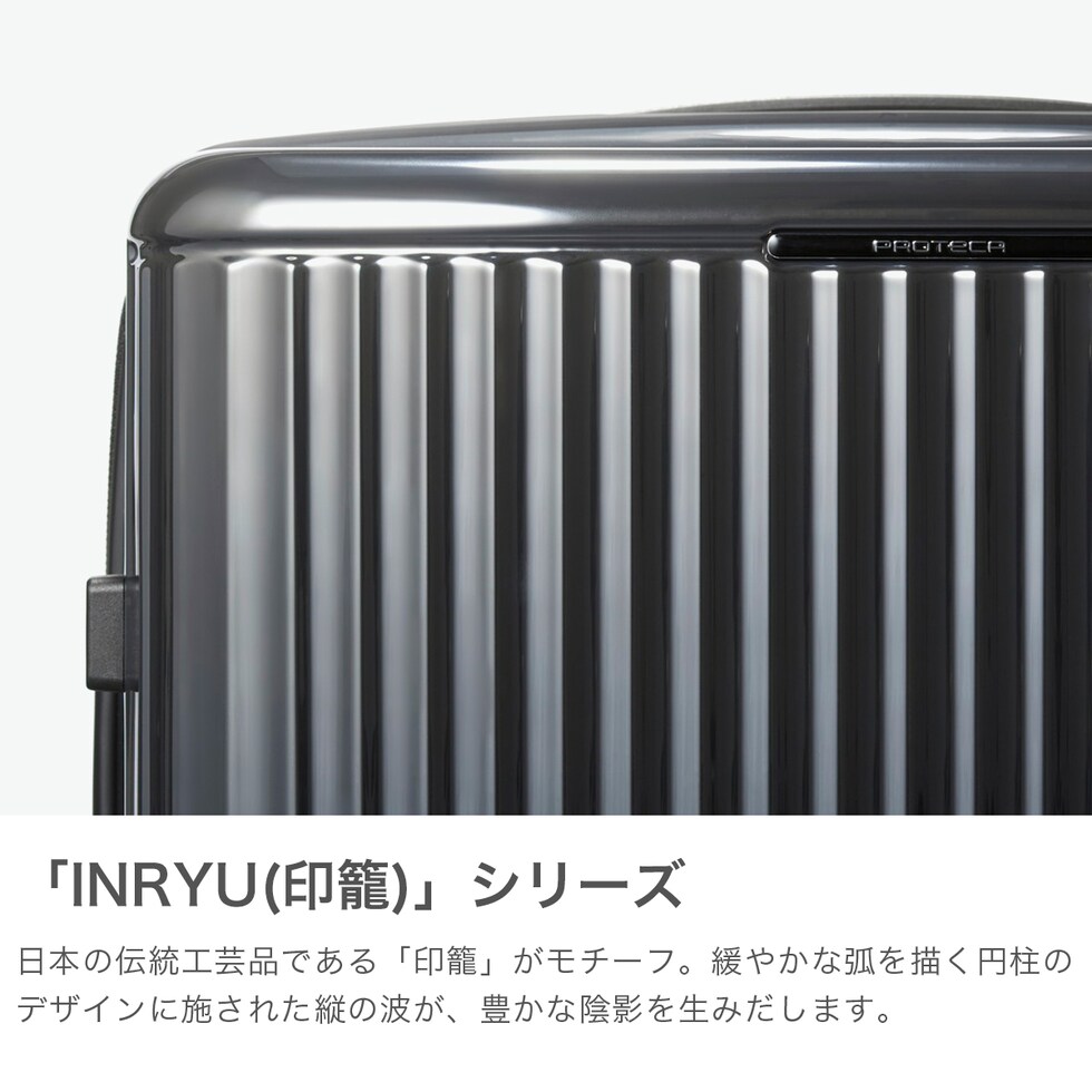 美しい大容量キャリー プロテカ「J5 Collection インリュウ」のLサイズスーツケース。10~11泊の旅行や長期滞在に対応する大容量108L。軽量で扱いやすく、静音キャスターがスムーズな移動を実現。MAGIC STOP機能でしっかり固定でき、TSAロック付きで海外旅行も安心。日本製の高品質と上品なデザインで、ビジネスからレジャーまで幅広く活躍します。 |