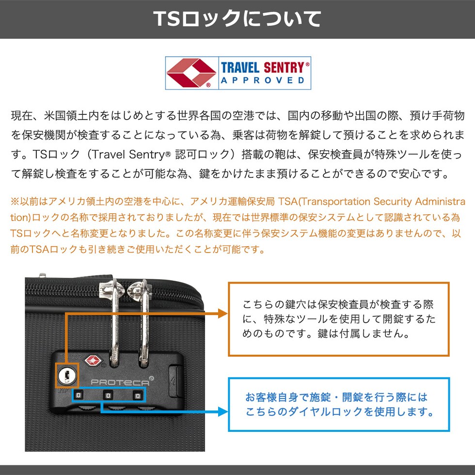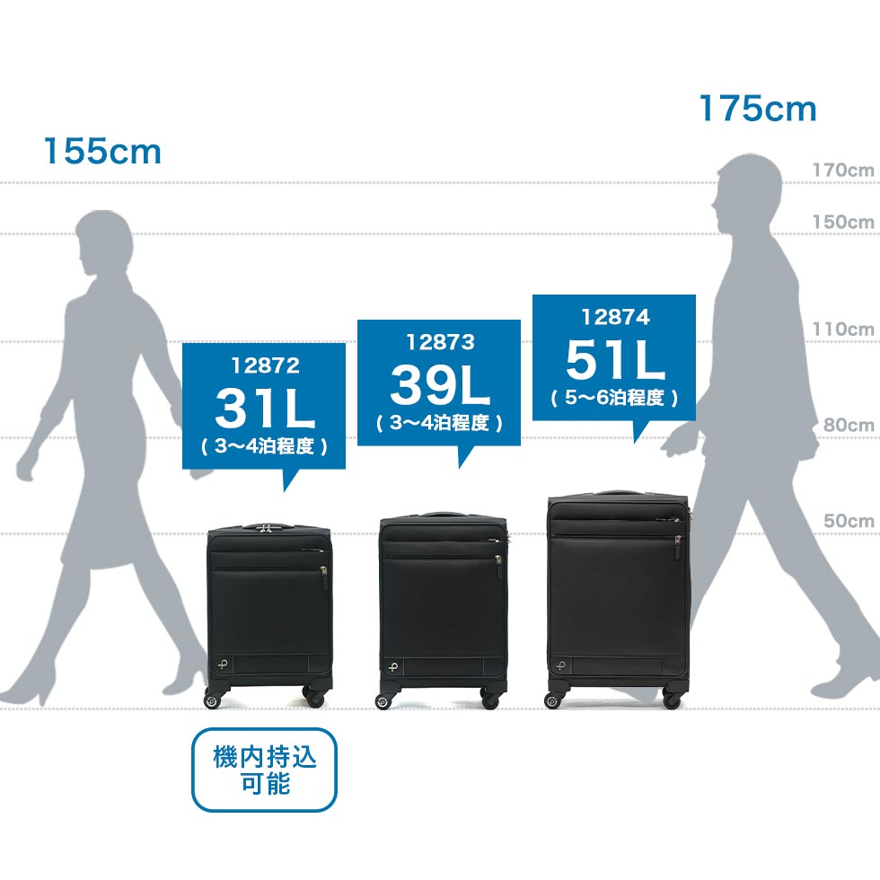 【正規品10年保証】 プロテカ スーツケース PROTeCA キャリーケース キャリー 軽量 軽い ソフト ジッパー TSA ロック 静音 キャスターストッパー 旅行 トラベル 出張 シンプル 51L 5泊 6泊 日本製 ソリエ3 12874