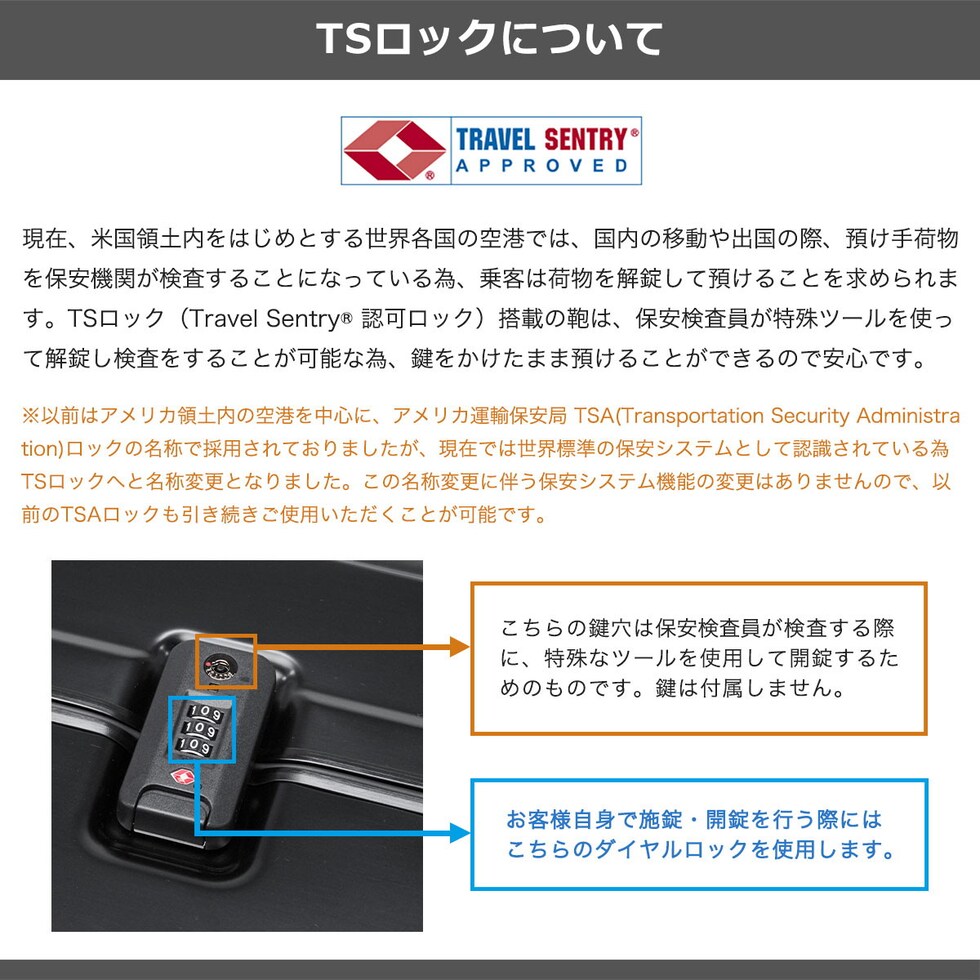 | TSAロック | あり ※TSAロックについて |