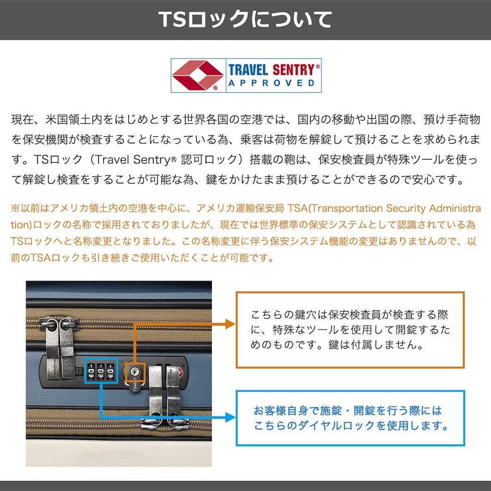 | TSAロック | あり ※TSAロックについて |