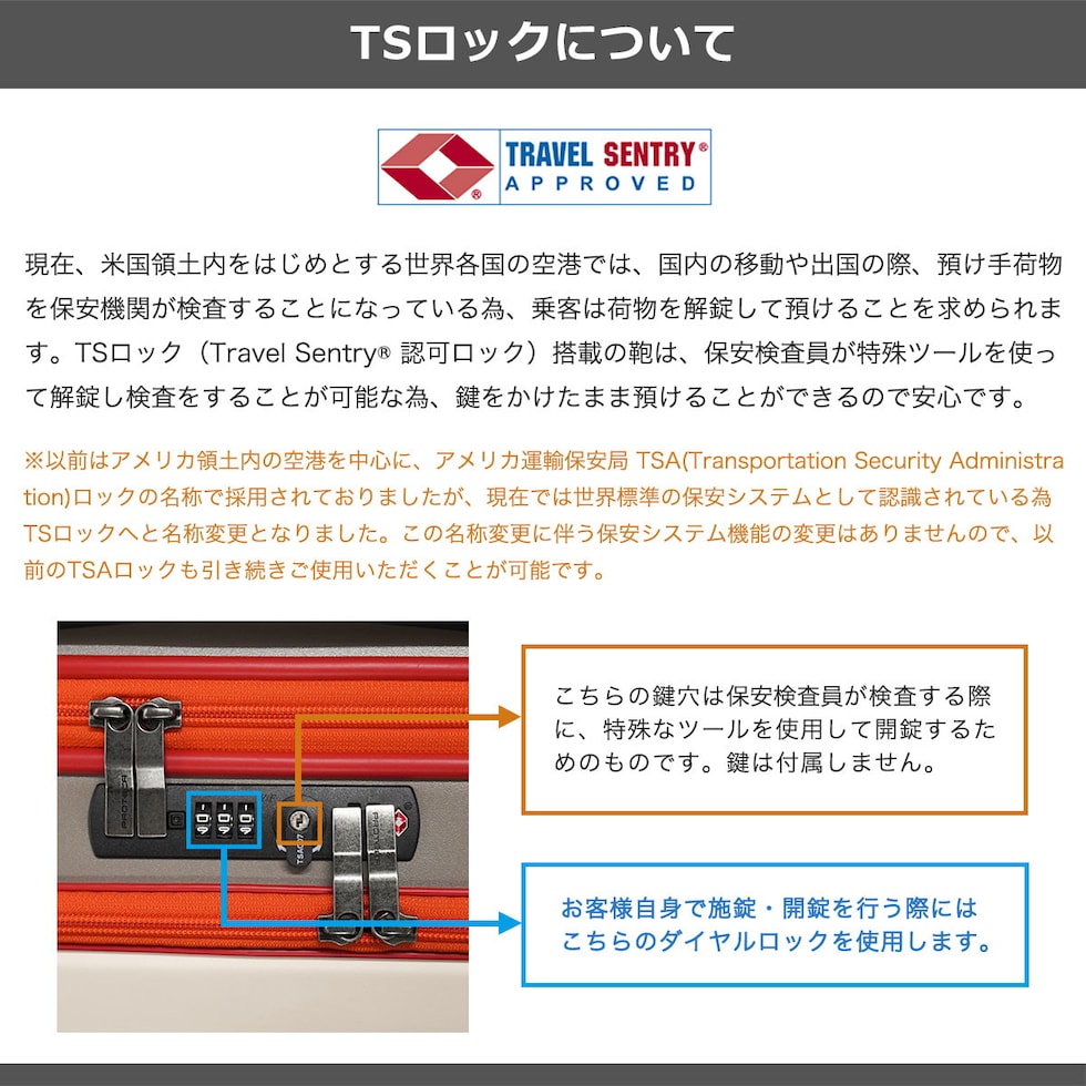 | <購入前にご確認ください> ・メーカーの意向により、付属品の収納袋や箱、製品の仕様やデザインは予告なく変更となる場合がございます。 ・下記による返品・交換はお受けすることができませんので、予めご了承ください。 └ 製品の性質上による細かいキズや塗装ムラ、気泡などがある場合。 └ 配送用の段ボールにキズ、汚れ、破損がある場合。 ・エキスパンダブル機能付きの製品は、マチ拡張時の3辺の和が機内持ち込みサイズ、預け入れ無料サイズを超える場合がございます。また、航空会社や飛行機の機種などによって規定が異なりますので、予めご確認の上お求めください。 ※機内持ち込みサイズ目安表はこちら ・摩擦・水濡れ・日焼けなどにより、色落ち・色褪せが生じる場合があります。 また、製品と衣類の接触により、相互に色移りする場合がございます。 ・柄の位置やカラーバランスなどは、生地の裁断や製造過程、素材の特性により画像とは異なる場合がございます。商品をお選びすることはできませんので、予めご了承ください。 ・極力実物に近い色味を再現しておりますが、モニター等の条件により画面上と実物では色味が異なって見える場合がございます。 |