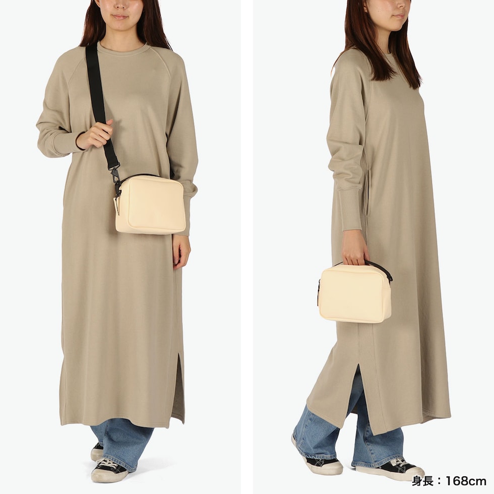 | 雨でも身軽を実現する 2WAYショルダー ミニマムなボックス型シルエットが特徴の「Box Bag」。場面やコーデに応じて、肩掛け、斜め掛け、ハンドバッグとして持てるようにデザインされています。ブランドのシグネチャーである撥水加工を施した素材を使用しているため、雨による水濡れの心配もありません。滑らかで上品な質感も魅力です。 |