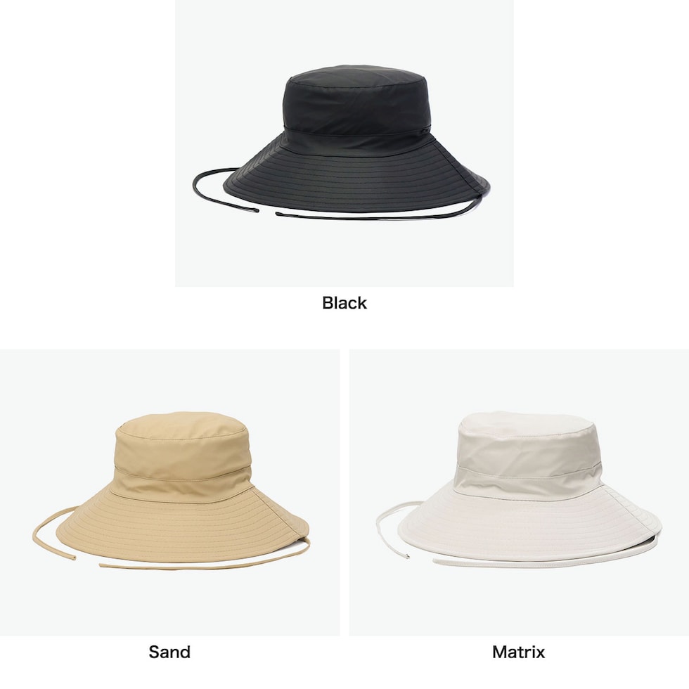 | 雨の日も活躍する 万能バケットハット レインウェアのコーディネートを完成させるのに最適なブーニーハット。ブランドのシグネチャーである撥水加工を施した素材を使用しているため、雨の日でも快適にご使用いただけます。幅広のリムが特徴的なシルエットで、ハットのカラーに合わせた紐をあごの下で結べば、しっかりとフィットします。 |