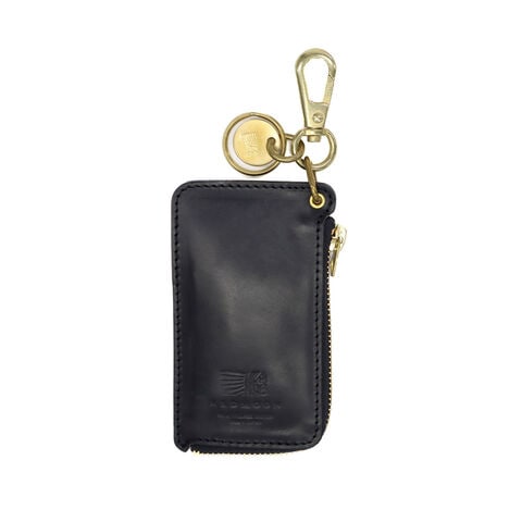 上質なミニウォレット ホーウィン社のクロムエクセルレザーを使用したキーホルダー付き薄型スリムウォレット。L型ジップで開閉するミニマルデザインで、引き手はブランドオリジナルとなります。ナスカン付きでアクセサリー感覚でベルトループに着ける事が可能。真鍮の金具がクロムエクセルレザーの風合いをより引き立てます。 |