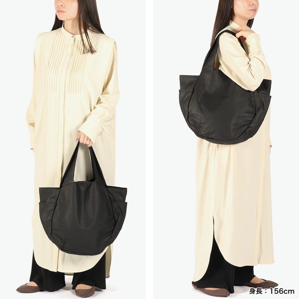 丸形フォルムバッグ 丸みある曲線で構成され、単純なラウンドバッグともつかないデザインの「パンプキンサック」のMサイズ。前後左右の生地をつなぎあわせることで見た目以上の収納力を実現。まさにそのかたちが使いやすさの秘密となっています。 |