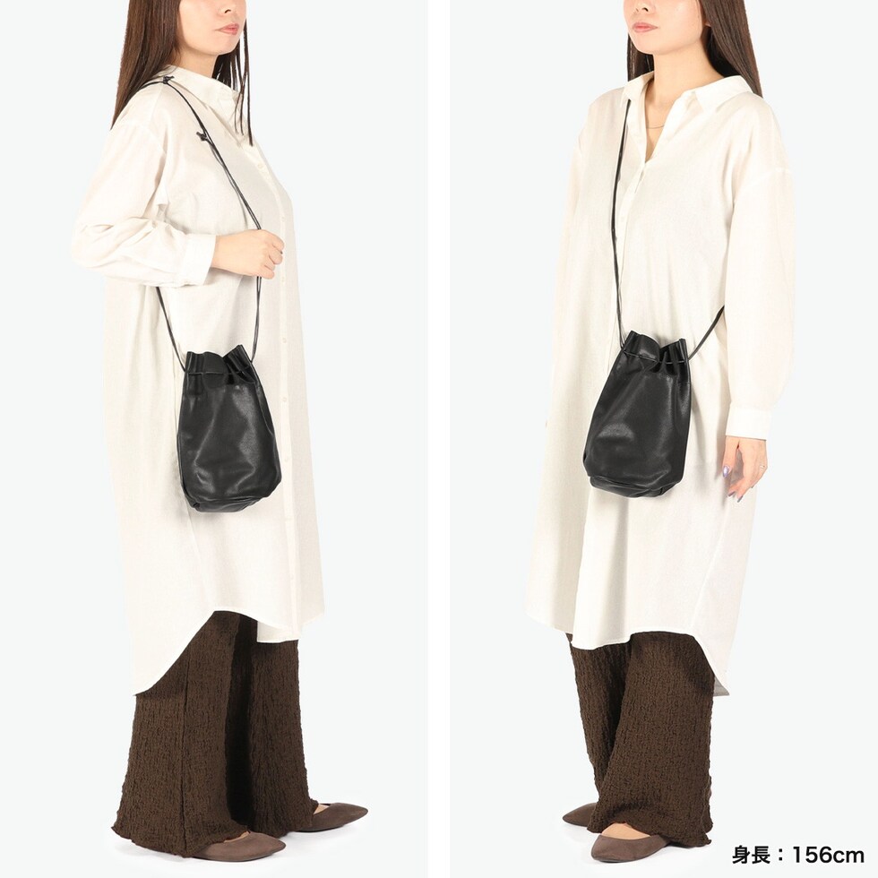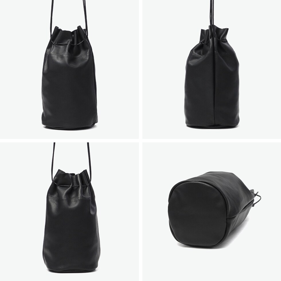 | 艶やかで柔らかい 優しい雰囲気が魅力 艶やかで柔らかさのあるやぎ革を使用したショルダーバッグ。巾着型のコロンとしたフォルムと、キュッと絞った時のドレープがとても美しく魅力的です。コーデの邪魔にならない華奢なショルダーストラップは、斜めがけや肩掛け、手持ちなど、気分に任せて自由に持ち方を変えられます。 |