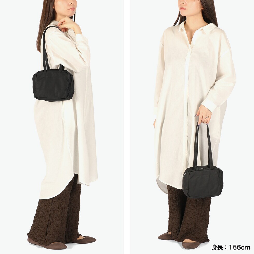 肩掛けしやすいサイズ感 まるで空気を含んだような軽さと、ふんわりとやわらかな手触りが特徴のバッグ。肩周りにゆとりが生まれ、動きを邪魔しない長めのハンドルがポイントです。厚手のニットやコートの上からでも肩掛けしやすく、小さめバッグの難点を解消。荷物を少なく身軽にお出かけしたいときに最適なミニマムバッグです。 |