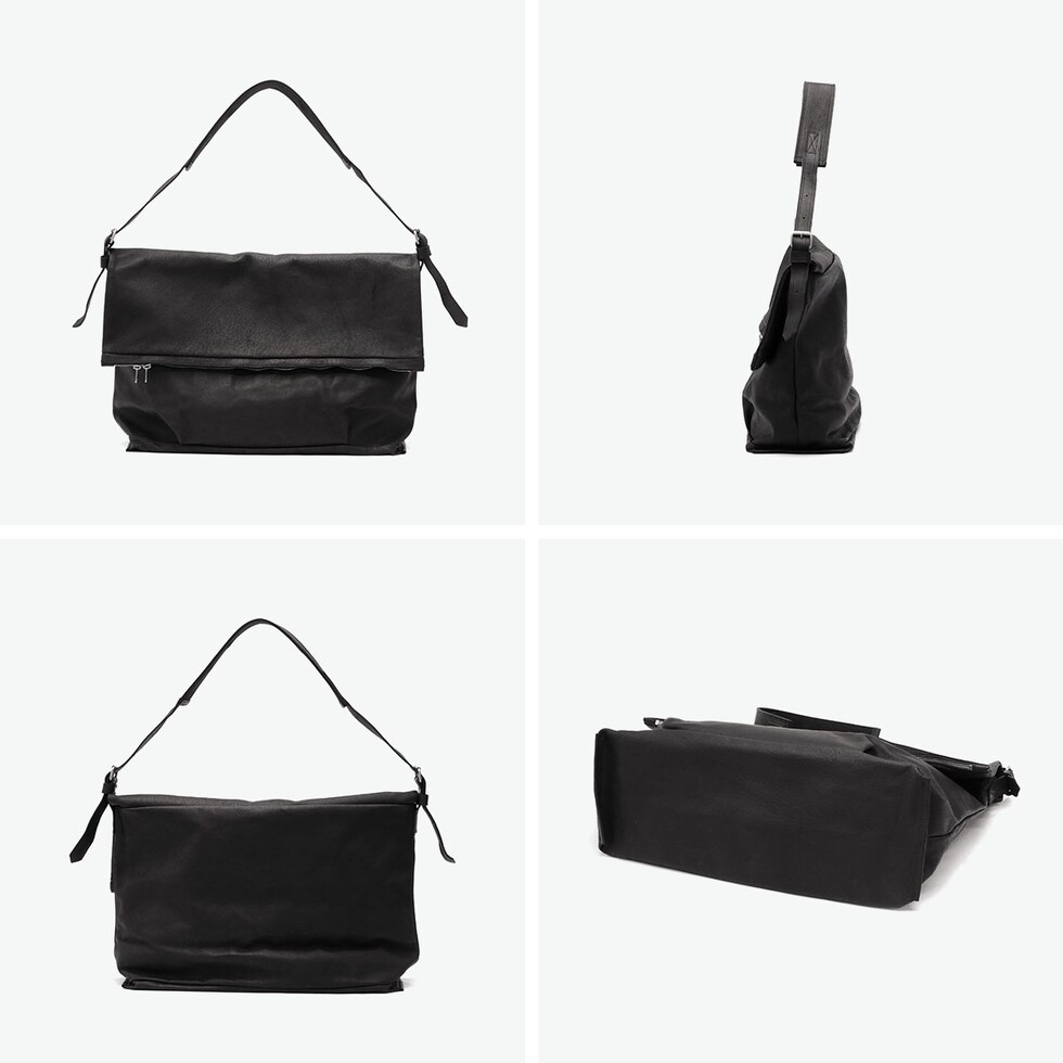 | 革が馴染む、大人の為の メッセンジャーバッグ 「カジュアルさ」と「きちんと感」のバランスが取れたデザインの革製メッセンジャーバッグです。くったりとした柔らかさのあるピッグレザーは、どんな荷物を、どんな風に入れても自然に収まります。フラップ自体がポケットになっていることで、荷物の取り出しやすさはもちろん、荷物の重みで自然な落ち感が出ます。スタイルに程よくきちんと感を添えてくれる、頼れるアイテムです。 |