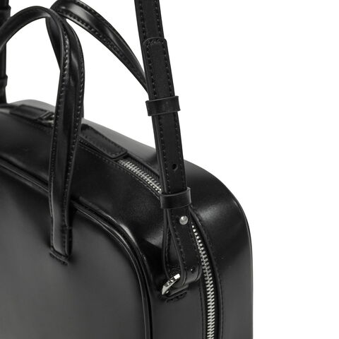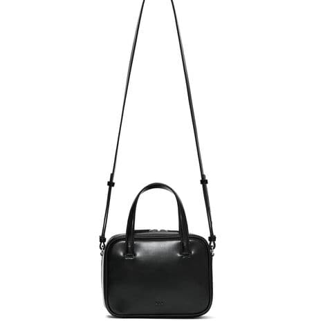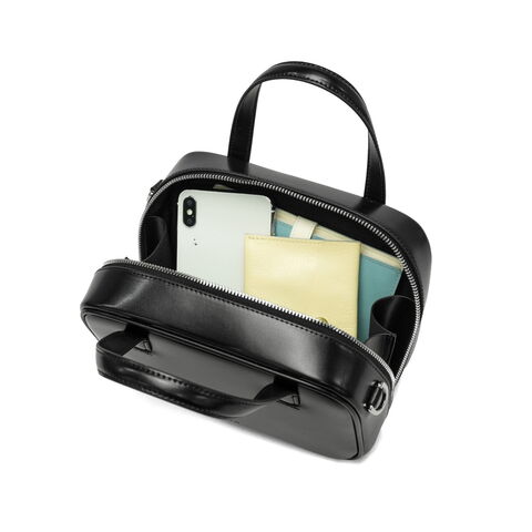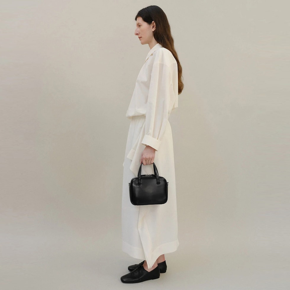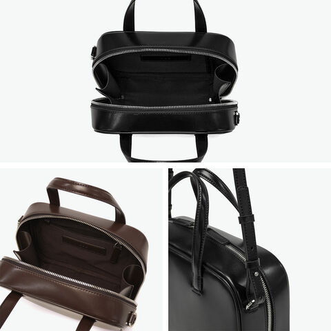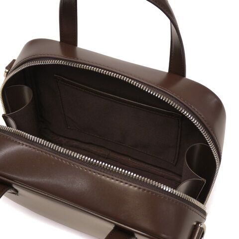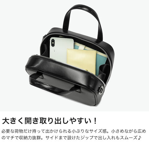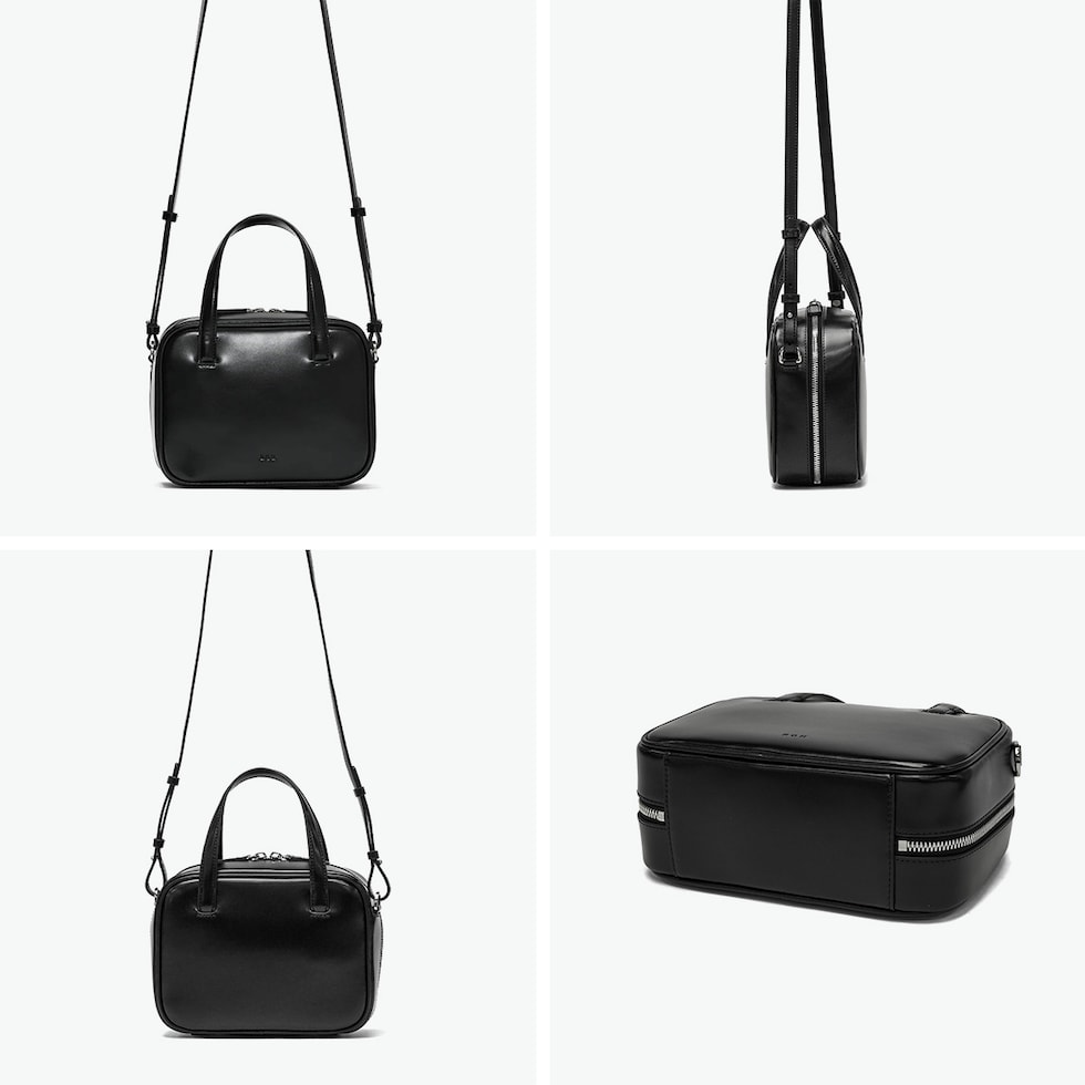 ユニークなデザイン クラシックな四角いフォルムと、ティンケース(缶ケース)から着想を得た遊び心あるデザインが魅力の2WAYトートバッグです。ほのかに艶を帯びたレザーが上品な印象を与え、広めのマチと底面まで大きく開くジッパー構造で、荷物の出し入れもスムーズに行えます。バッグの内側にはサイドガードが施されており、ジッパーを大きく開けても中身が落ちにくい安心設計。ハンドバッグとしてもクロスボディとしても楽しめる汎用性の高いバッグです。 |