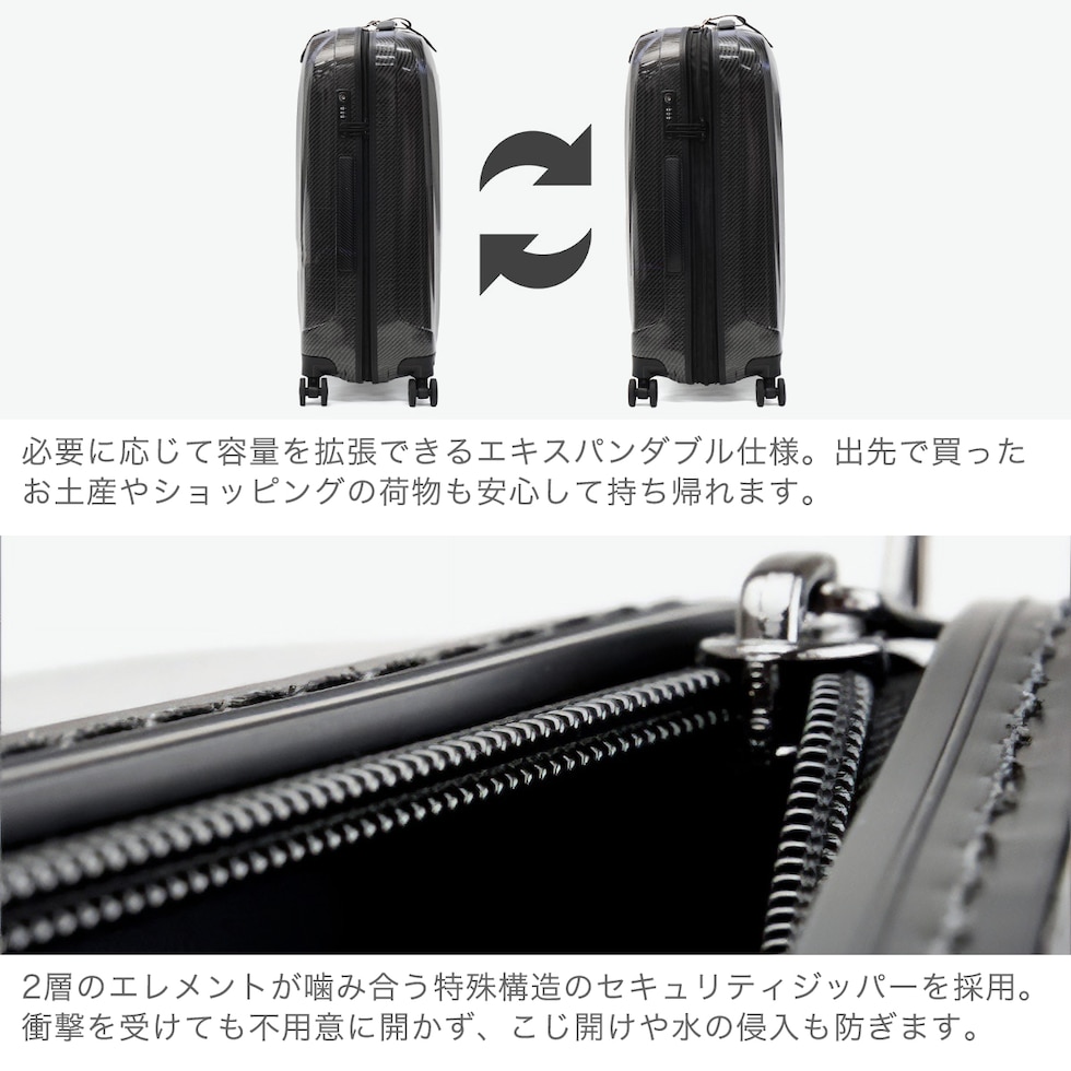 | <購入前にご確認ください> ・メーカーの意向により、付属品の収納袋や箱、製品の仕様やデザインは予告なく変更となる場合がございます。 ・下記による返品・交換はお受けすることができませんので、予めご了承ください。 └ 製品の性質上による細かいキズや塗装ムラ、気泡などがある場合。 └ 配送用の段ボールにキズ、汚れ、破損がある場合。 ・エキスパンダブル機能付きの製品は、マチ拡張時の3辺の和が機内持ち込みサイズ、預け入れ無料サイズを超える場合がございます。また、航空会社や飛行機の機種などによって規定が異なりますので、予めご確認の上お求めください。 ※機内持ち込みサイズ目安表はこちら ・摩擦・水濡れ・日焼けなどにより、色落ち・色褪せが生じる場合があります。 また、製品と衣類の接触により、相互に色移りする場合がございます。 ・柄の位置やカラーバランスなどは、生地の裁断や製造過程、素材の特性により画像とは異なる場合がございます。商品をお選びすることはできませんので、予めご了承ください。 ・極力実物に近い色味を再現しておりますが、モニター等の条件により画面上と実物では色味が異なって見える場合がございます。 |