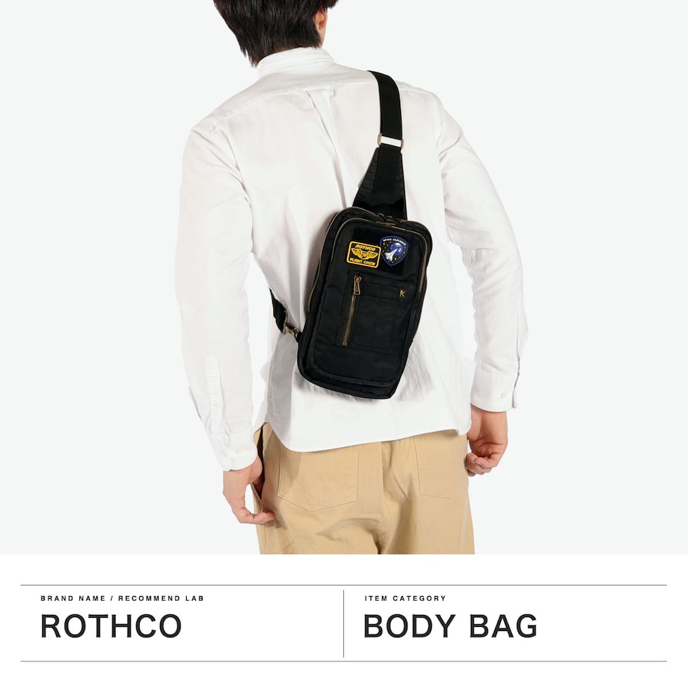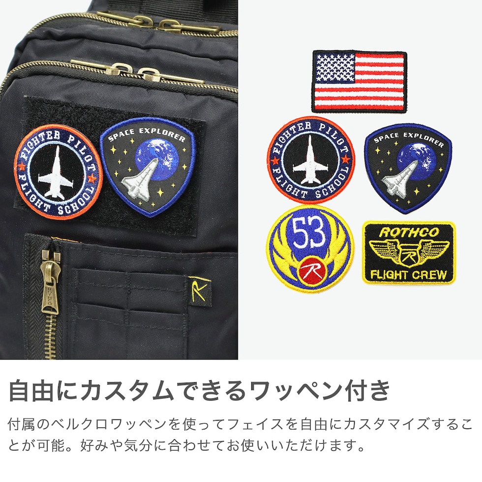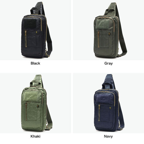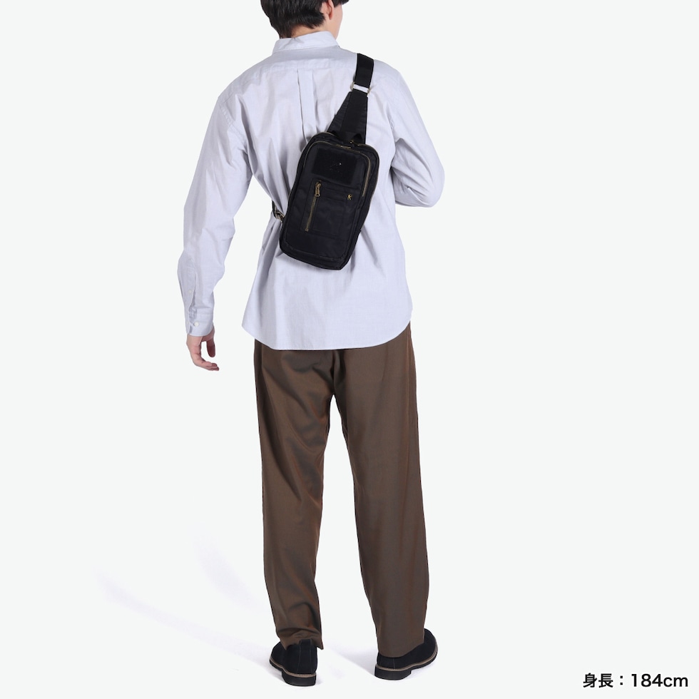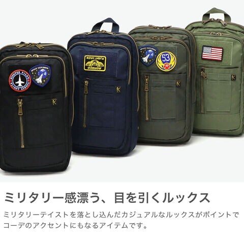 | ミリタリー感を 背負って楽しむ 自由にワッペンを貼り付けて個性をプラスできる『AIR FORCE』。タブレットが収納できる縦型デザインが魅力のボディバッグです。A5対応のコンパクトサイズで軽量ナイロン素材を使用し、ファスナー付きで安心感も抜群。ミリタリーテイストのアクセントが、大人のカジュアルスタイルを引き立て、普段使いからアウトドアまで、幅広く活躍するおしゃれな一品です。 |