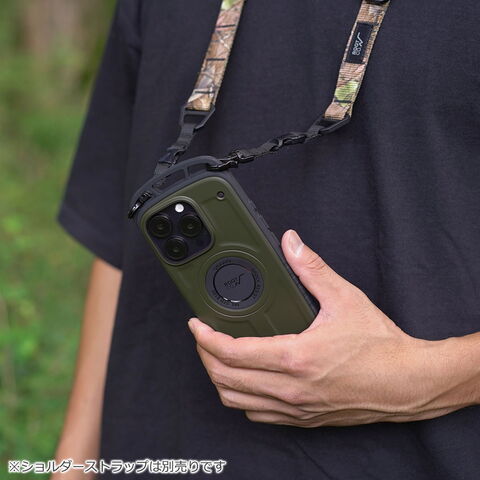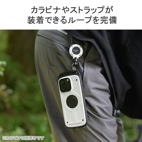 機能・耐衝撃・軽量の3点を兼ね備え、上部にカラビナ等がつけられるループを搭載したiPhone16ProMax専用ケースです。最も注目すべきは、米国環境耐性試験に準拠した耐衝撃性能。落下による衝撃をカバーし、スマホを傷や割れから守ります。パワフルさを感じさせつつも、普段使いしやすいスタイリッシュなデザインも魅力。MagSafeに対応しており、ケースをつけたままMagSafe充電器等を使用することも可能です。