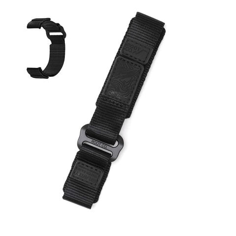 耐久性のあるナイロンウェビングを採用し、アウトドアの様々なフィールドでタフに使えるApple Watch用バンド。ベルクロ式なのでワンタッチの着脱やサイズ調節が可能です。デザインは、アウトドアシーンに合わせやすいラフすぎないカジュアルな仕上がりで、バンド端に湿気や摩耗に強いPVC製タグを配置する等、細かいディテールにもこだわっています。