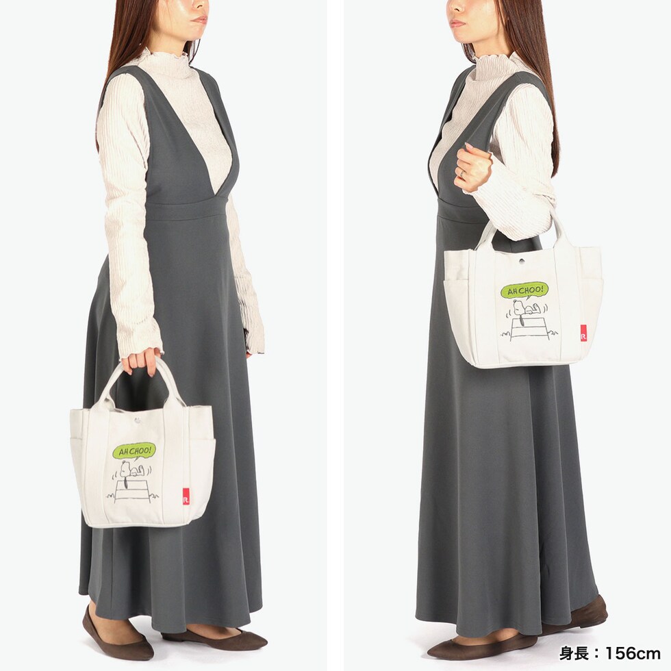 スヌーピーの刺繍に注目 表情豊かなスヌーピーの刺繍が愛らしい、身軽にお出かけできる小さめトート。繊維工場で不要になったコットン素材の裁断くずや廃棄衣料を使用したリサイクルコットンで、可愛さだけでなく環境にやさしいテキスタイルもポイント。ひとつひとつ微妙に異なる色、ネップなどの素材感を楽しめるバッグです。軽くてたっぷり荷物が入り、サブバッグでもメインでも大活躍! |