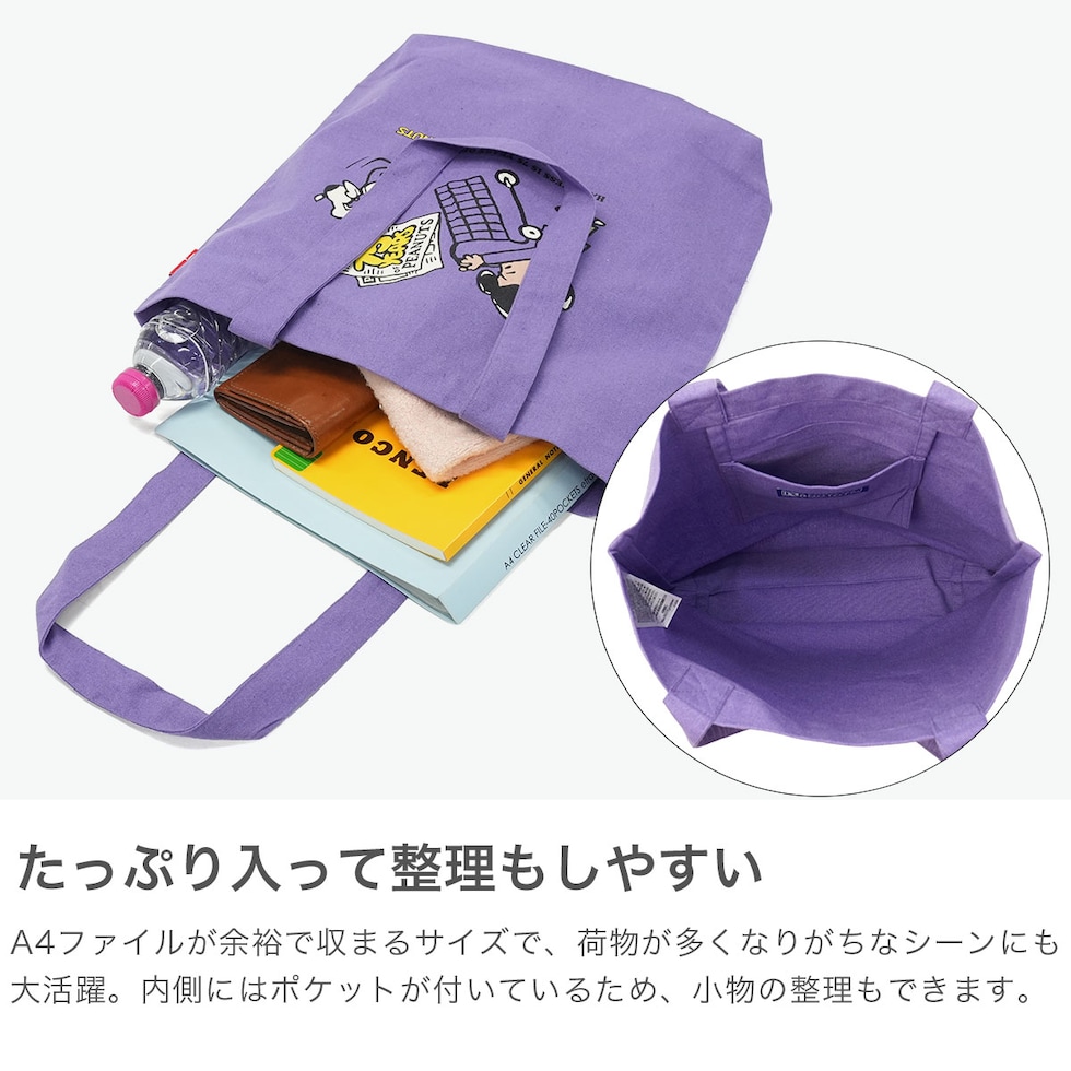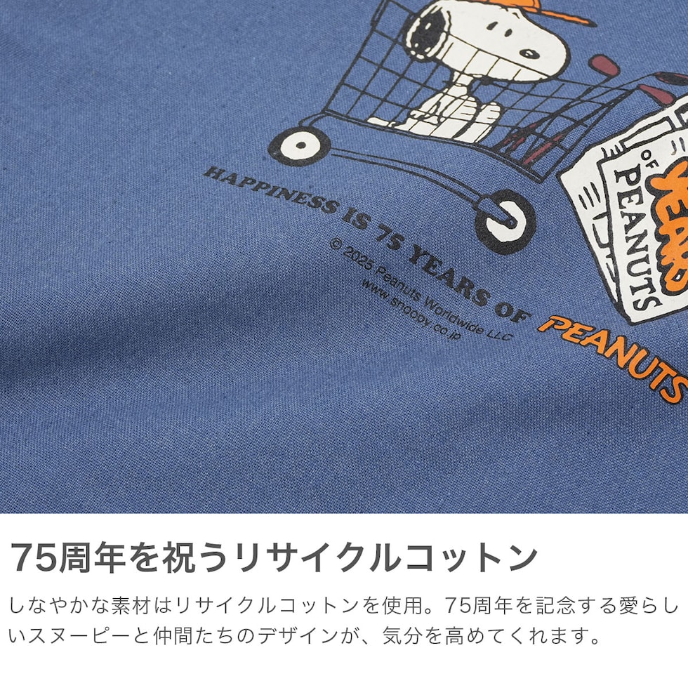 | スヌーピーたちと 気分を高めておでかけ PEANUTSコミック誕生75周年をお祝いするヴィンテージアートをあしらったトート。エコを意識した裁断くずや廃棄衣類を使用したリサイクルコットン素材を採用し、A4サイズがすっきり収まるベーシックなデザインが大人コーデでもマッチします。サブバックとしても活躍できるためスヌーピーの仲間たちのデザインとお出かけをお楽しみください。 |