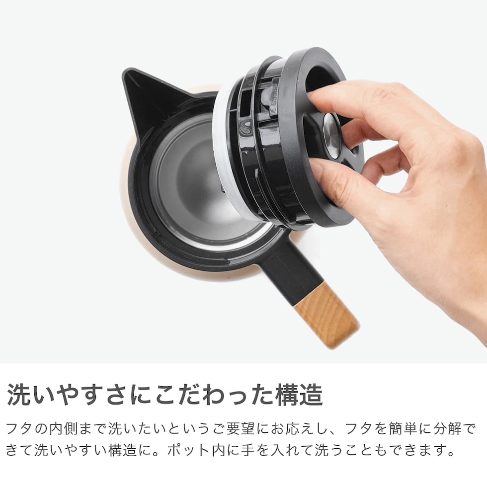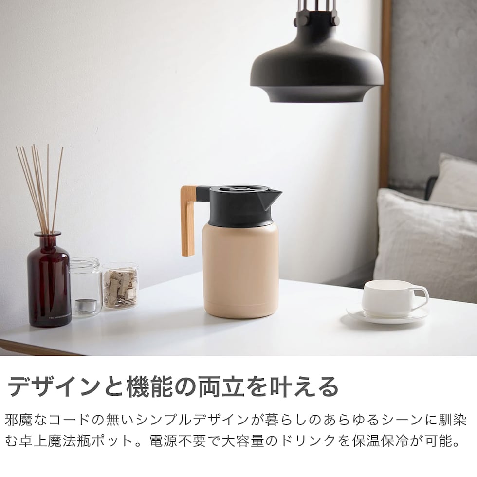 魔法びんポット デザインと機能を両立させた卓上魔法瓶「サーモジャグキート」。自宅ではインテリアに馴染む美しい佇まいを、屋外では電源不要の高い保温保冷性能を発揮。洗いやすく改良されたフタ構造や、家具にも使われる高品質塗料を施した天然木ハンドルなど、細部まで丁寧に仕上げられています。1.2Lの大容量で、日常にもアウトドアにもフィットする、頼れる一台です。 |