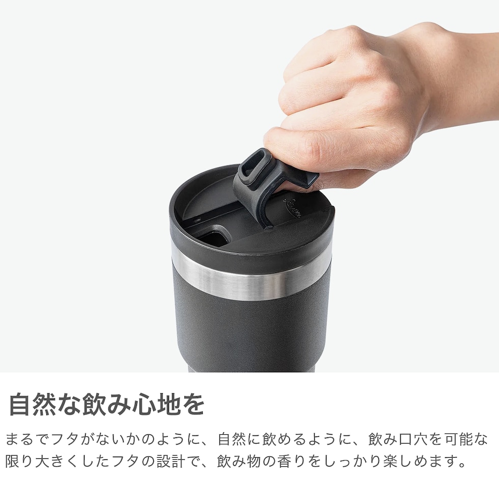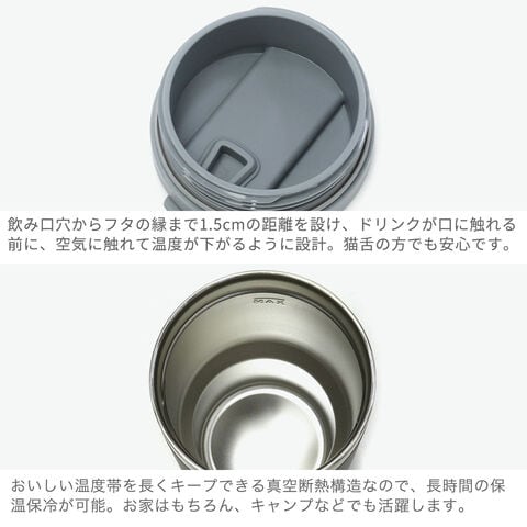 | 温度をキープ 香りもそのまま 心地よく飲める飲み口を目指して開発された真空ステンレスタンブラー「ウォールマグ シェイド」。飲み口穴を大きく設計し、フタ付きでも香りをしっかり感じられる心地よい飲み心地を実現しました。熱い飲み物でも空気に触れて適温になってから口に届く絶妙な構造や、フタを外せばカップとしても使える2WAY仕様が魅力。真空断熱構造で保温・保冷力も優れ、日常でもアウトドアでも活躍します。 |