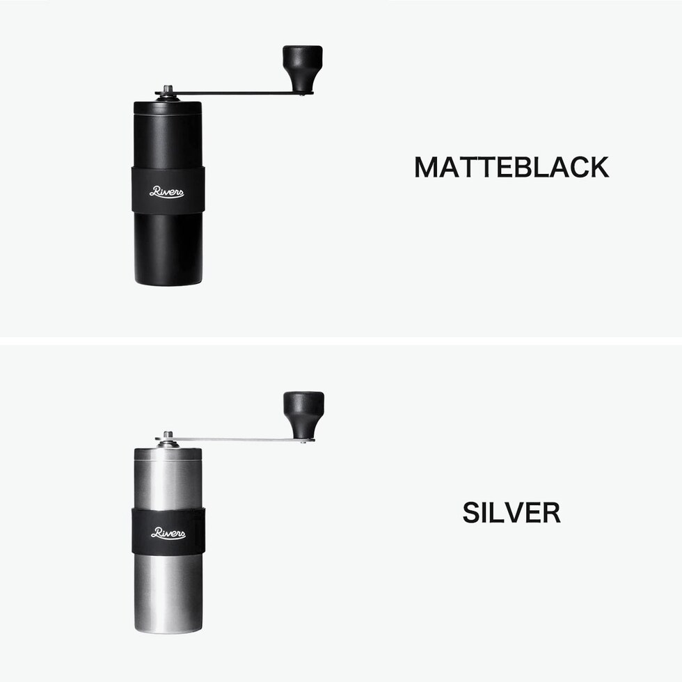 リバーズ コーヒーミル 小型 Rivers ブランド アウトドア キャンプ コーヒー ミル 手動 120ml ブラック シルバー 日本製 手挽き 粗挽き 細挽き 豆挽き 粒度調節 持ち運び コーヒーグラインダー グリット2 CF008