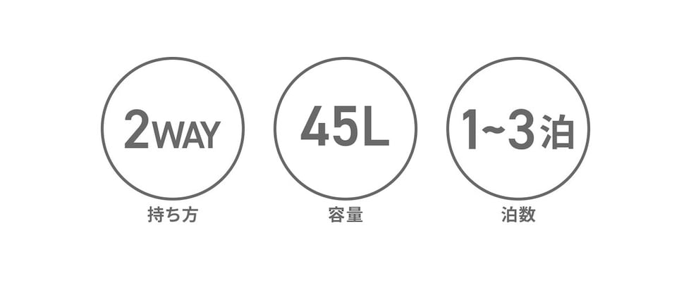 シンプルで使いやすいベーシックなフォルムに、カレッジ風のロゴをプリントした大容量2WAYボストンバッグ。45Lの容量を設けた本体は、1泊~3泊程度の旅行に最適なサイズ感に仕上がっています。また取り外し可能なショルダーストラップを搭載。手提げや斜め掛け、肩掛けなど持ち運び方を自由に選べる仕様が装備されています。使用時以外はストラップの片側を外しサイドポケットに収納できる機能的な設計もポイントです。